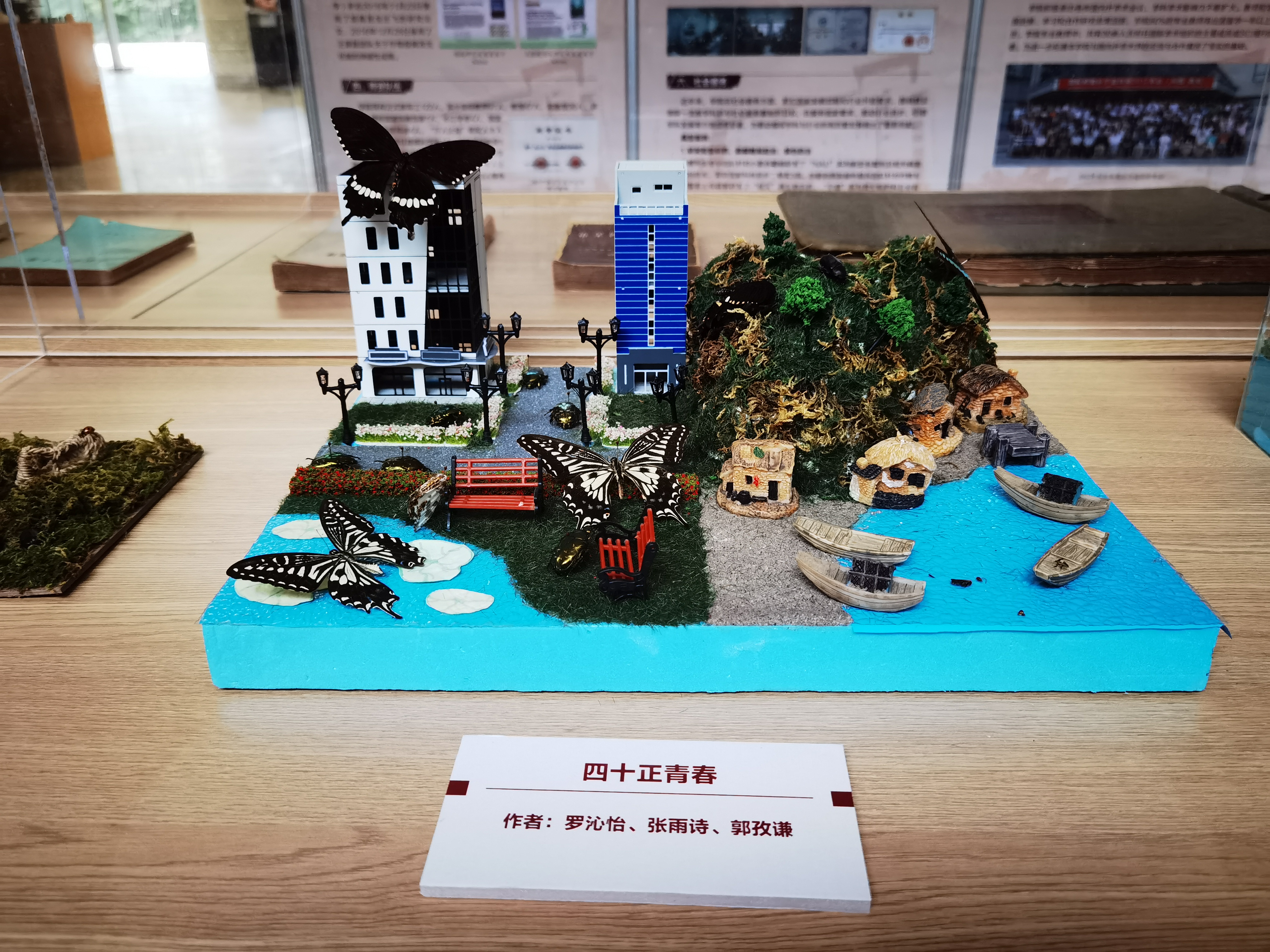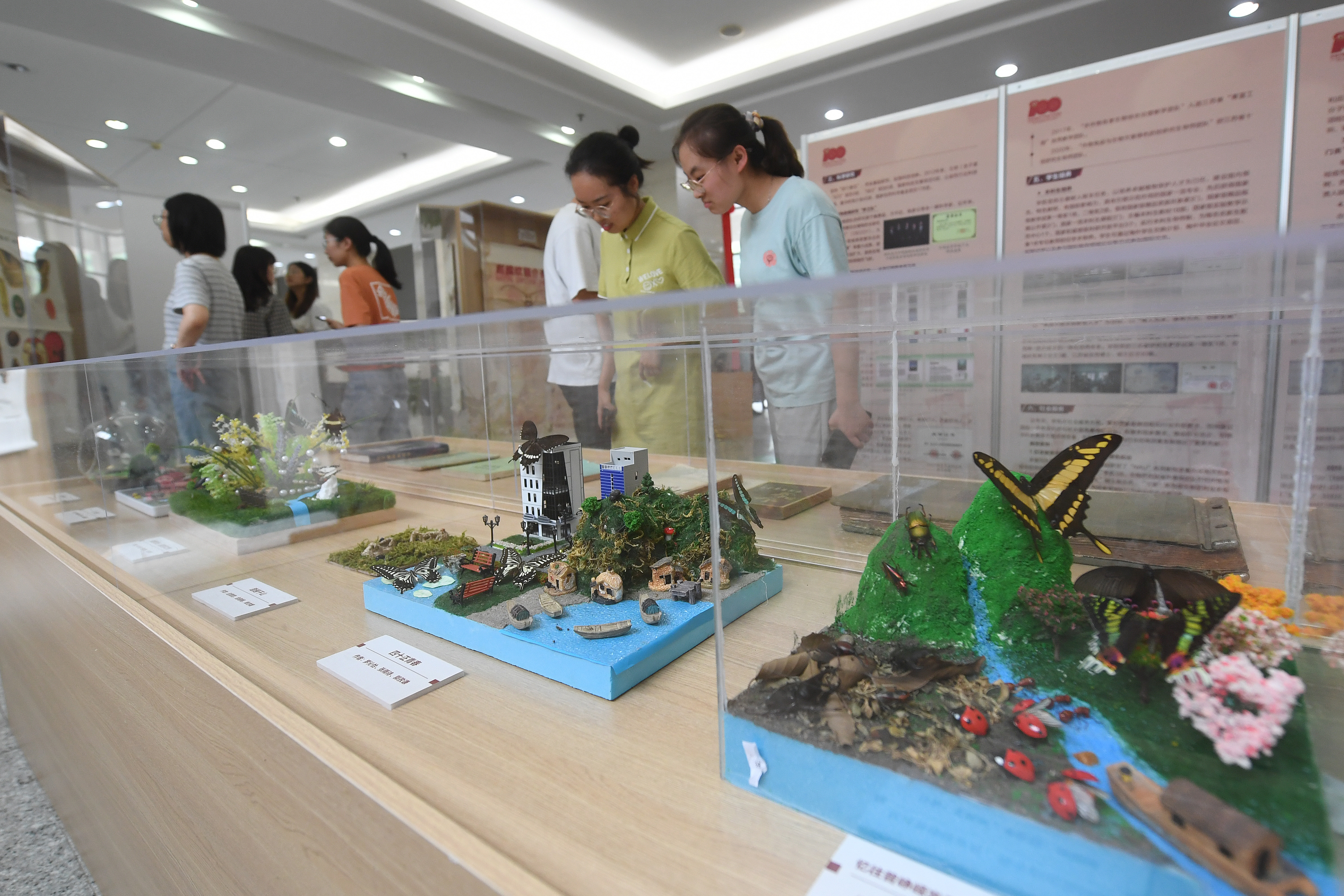 学生创意作品展板块,展出了学生的微观摄影作品和昆虫微景观作品,方寸之间,尽显当代大学生的创意与情怀。