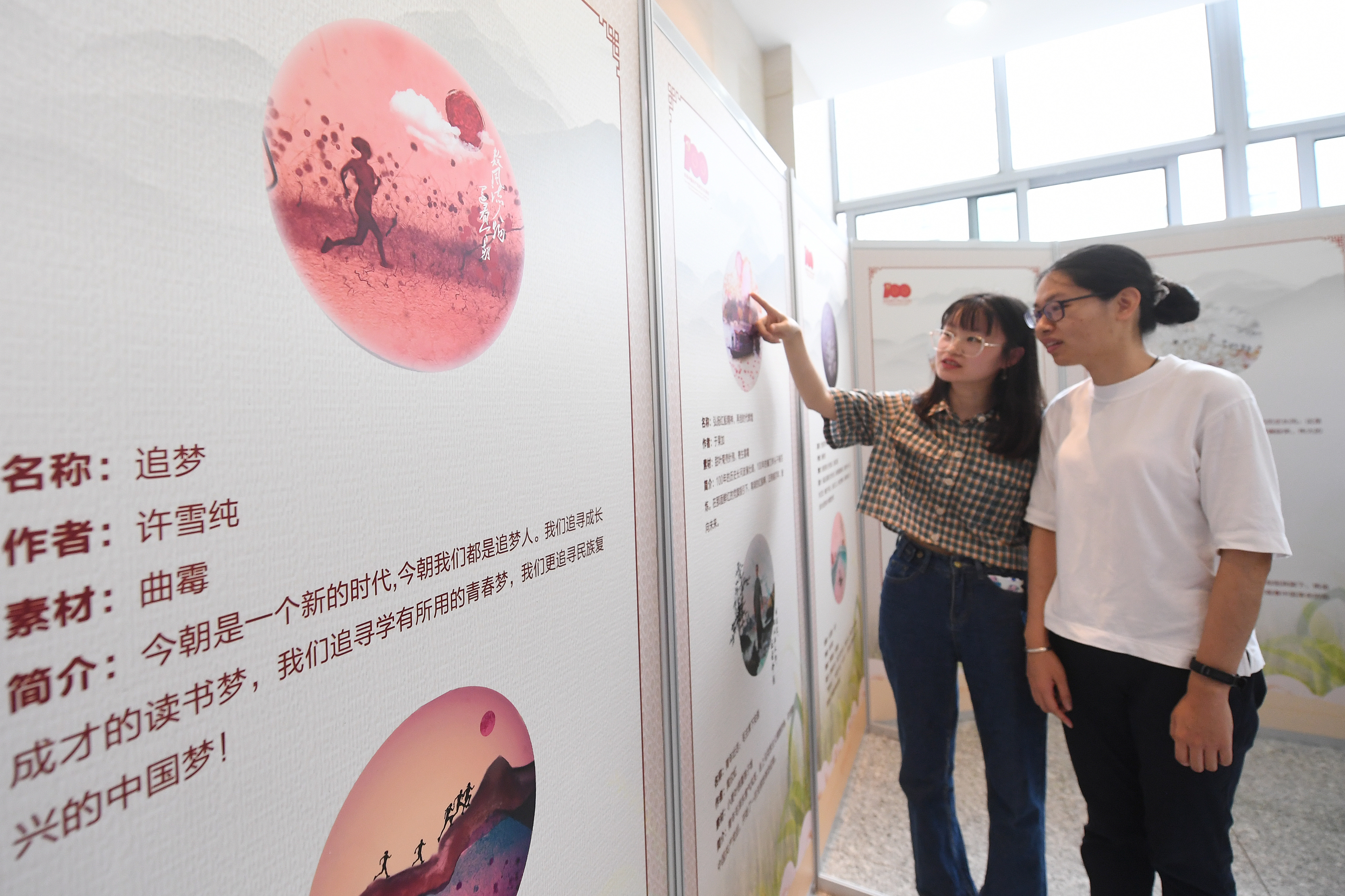 参观者拍摄手绘精美教学挂画