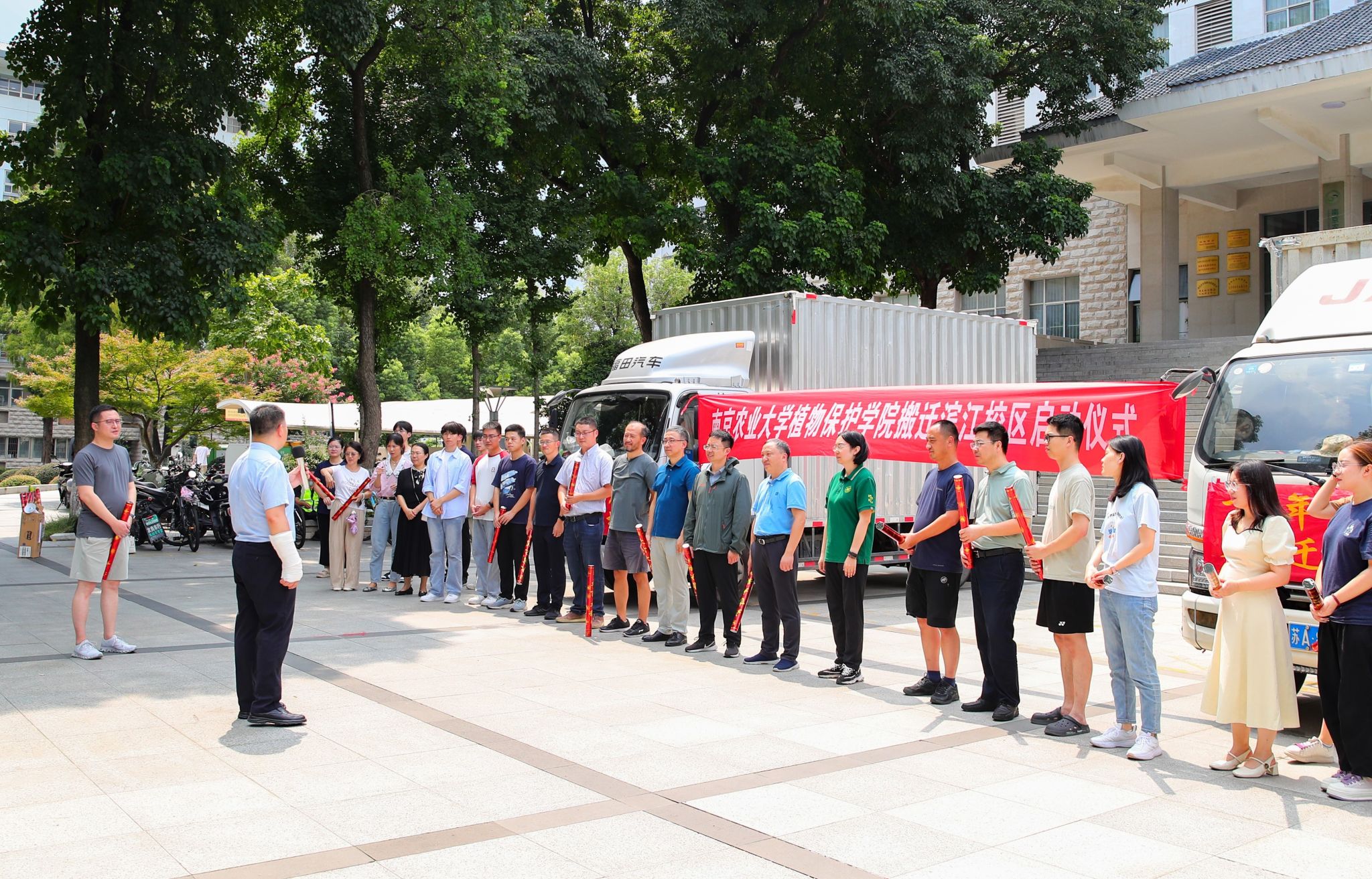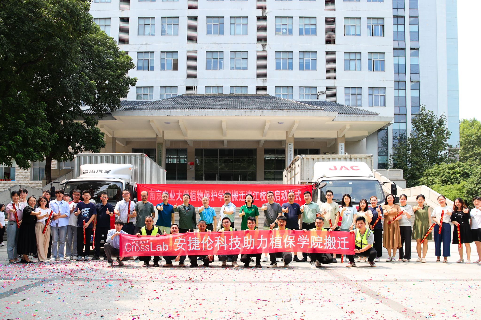 搬迁滨江校区工作正式启动。在礼花和欢呼声中,满载货物的车辆缓缓驶出,驶向滨江校区,奔赴新的征程。