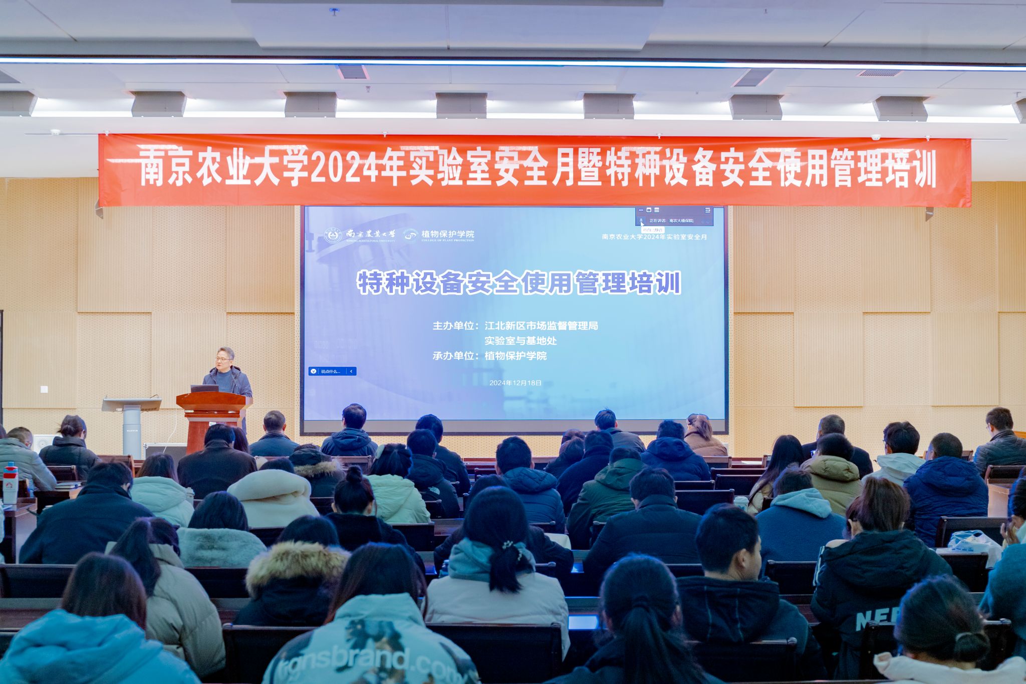 副院长华修德,以及学校实验室安全督导、学院实验室安全管理员、特种设备管理员和师生代表共158人参加了培训会,培训会由陈洋主持。本次培训会是学校实验室安全月的主要活动之一,旨在增强实验室特种设备安全使用管理意识,提升全校师生安全使用管理特种设备的水平,保障特种设备安全规范运行,防范化解实验室安全风险,为学校教学科研工作保驾护航。