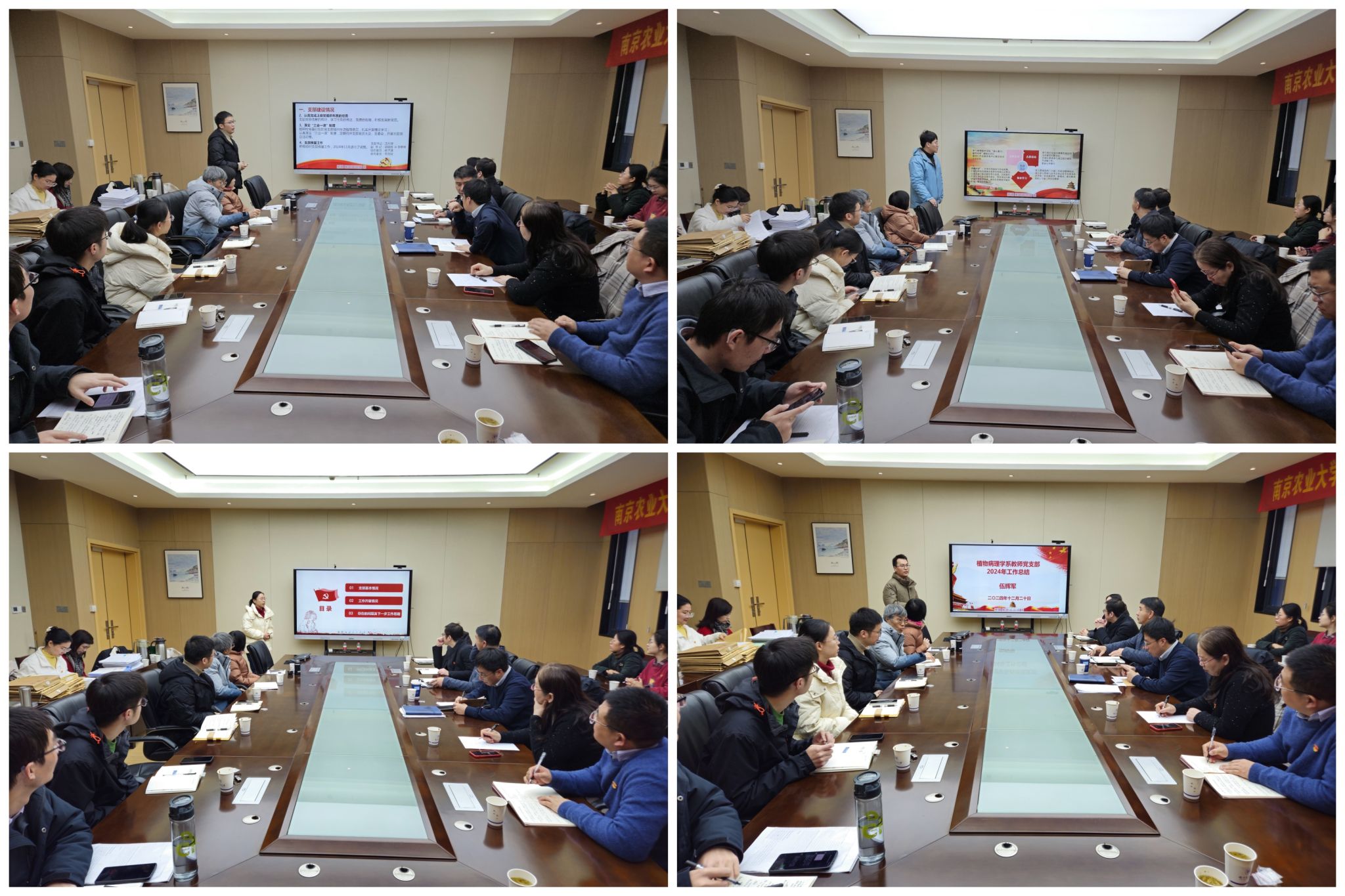 会上,各位党支部书记围绕支部标准化建设情况、党纪学习教育开展情况、学习贯彻全国教育大会精神情况、学习贯彻党的二十届三中全会情况、三会一课开展情况、发展党员工作情况等方面,汇报了2024年度党支部工作的主要做法和成效,深刻分析了存在的问题和不足,并提出了2025年党支部工作计划和改进措施。