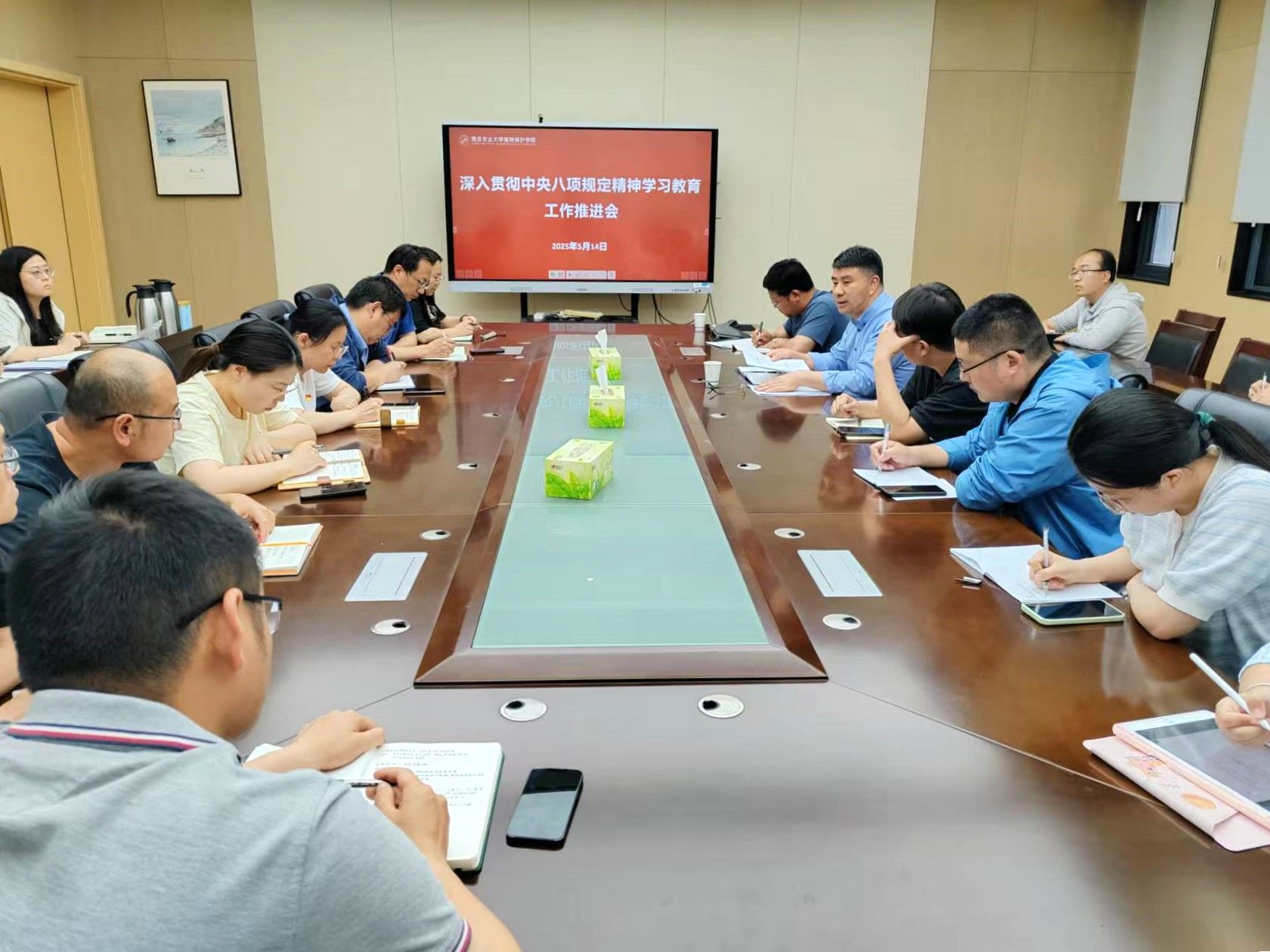 会上,许承保传达了学校深入贯彻中央八项规定精神学习教育工作专班的最新工作要求,带领大家一起学习了《党的十八大以来深入贯彻中央八项规定精神的成效和经验》《八项规定改变中国》。