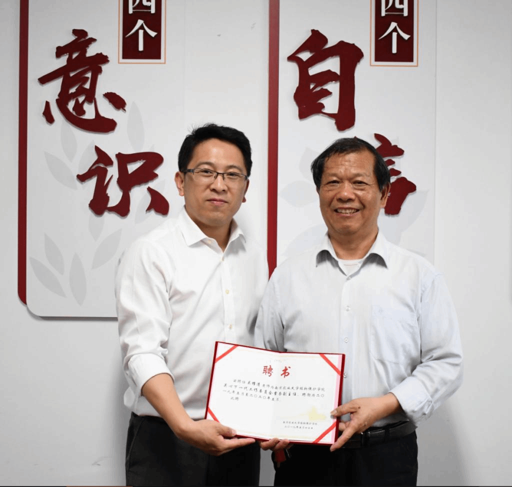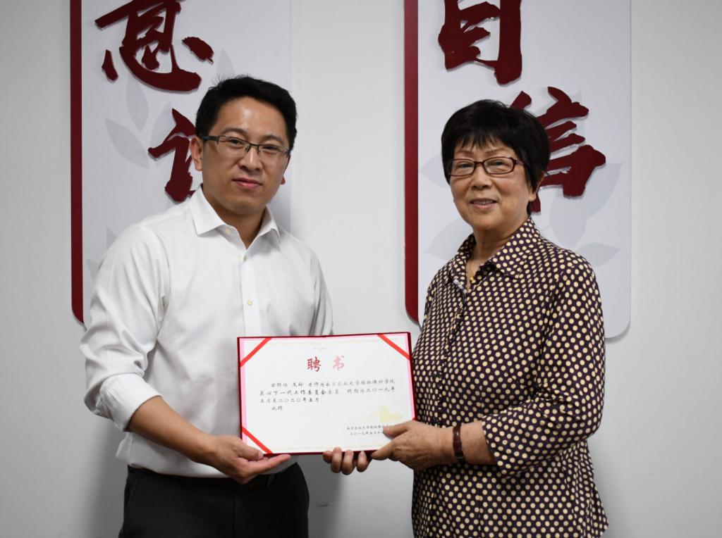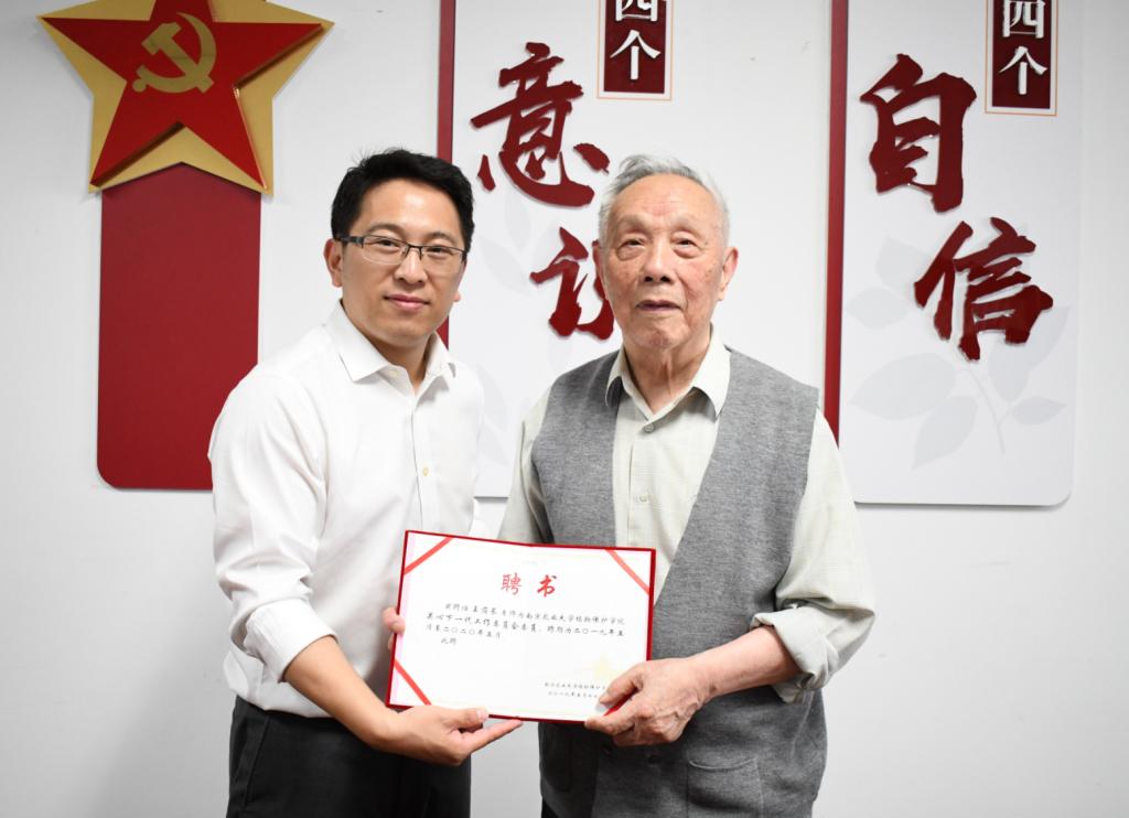 关心下一代工作委员会主任,吴耀清为委员会常务副主任,沈晋良、陈进为委员会副主任,王荫长、魏大为、文玲为委员会委员,汪越为委员会秘书。邵刚为老教授们颁发聘书。
