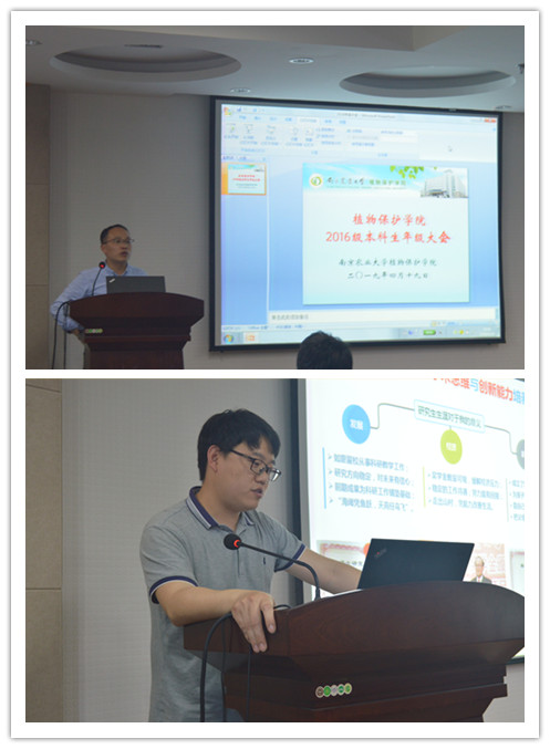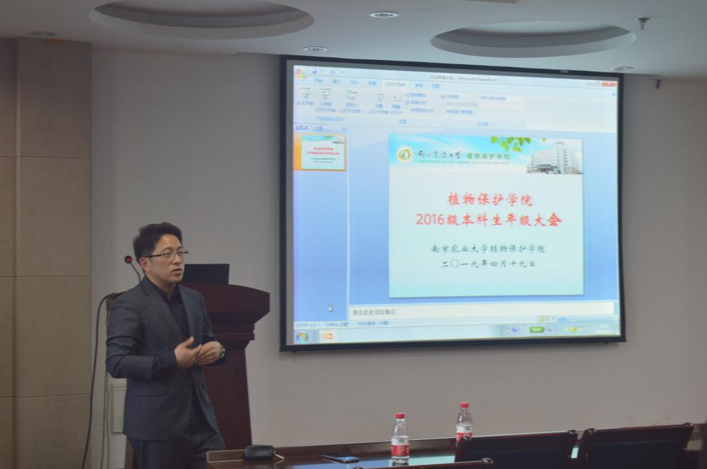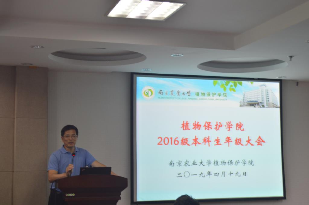 4月19日14:00,植保学院2016级本科生年级大会在理科楼C303会议室召开。大会由学院党委书记邵刚主持,院长王源超、优秀青年教师钱国良、金琳、张峰作报告,2016级全体本科生出席大会。