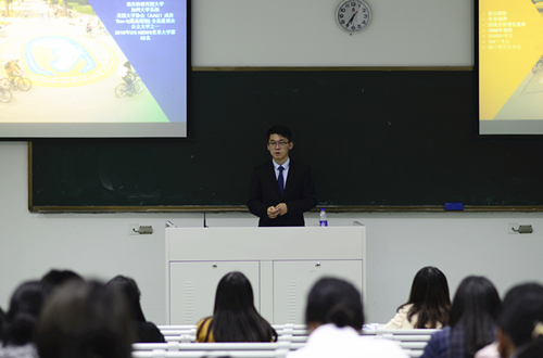 首先,罗承栋向同学们介绍了加州大学的学校排名与学科优势,引起了同学们的关注。随后,他仔细讲解了加州大学戴维斯分校与南农合作的访学项目。访学将通过课程、讲座、参观、workshop等形式来加深大家对美国大学和农业、生命科学的了解,并提升同学们的英语水平。最后,罗承栋分享了自己出国的经历,鼓励大家“走出去”,突破意识的局限,将目光放眼于世界。