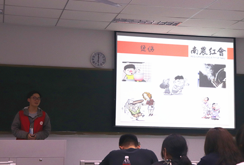 红十字会在主楼102为同学们开展一场急救知识讲座。