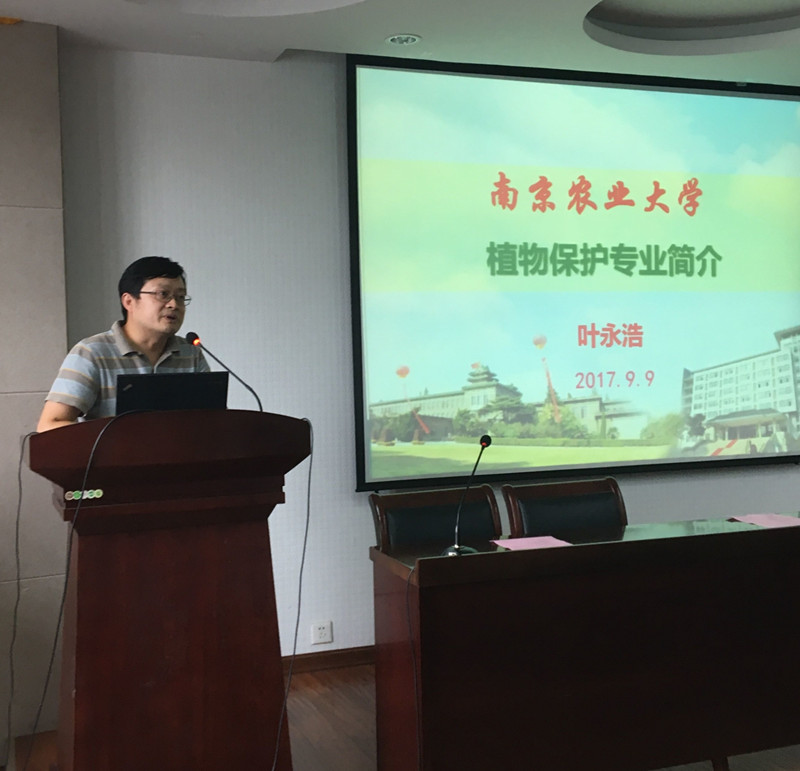 副院长叶永浩详细介绍植物保护专业优势的八个方面。师资队伍力量雄厚,课程和教材建设国内领先,创新能力培养平台先进,社会服务成效显著等。