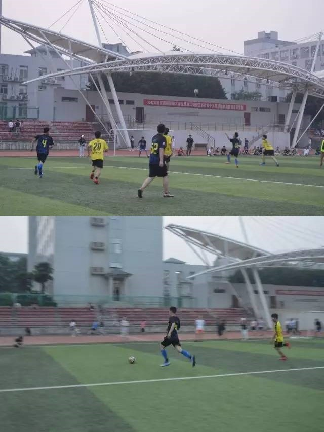 领先。下半场,食品院也奋力争分,比赛进行一半时,食品院的一次射门中打中横梁,垂直落地,在争议声中裁判判定食品院进球。下半场结束时比分1:1,最终双方战平。