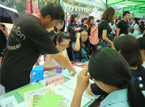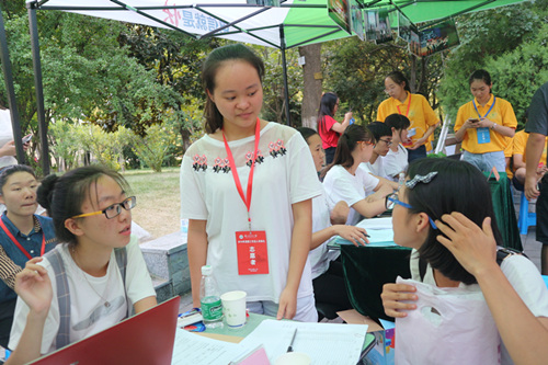 拖着沉重的行李的新生家长们,来回奔波于计财处、大活缴费处以及玉兰路之间,为孩子们的入学报到而费心尽力。骄阳虽然能洒在他们身上,但他们心底对孩子的爱犹如一股清泉,滋润心田。在把蚊帐、被褥都安排妥当后,新生家长还不忘向志愿者们询问学校和学院的基本情况,来自五湖四海的家长们带着不同的口音却聊着同样的话题,唯父母之心天下最可贵也。