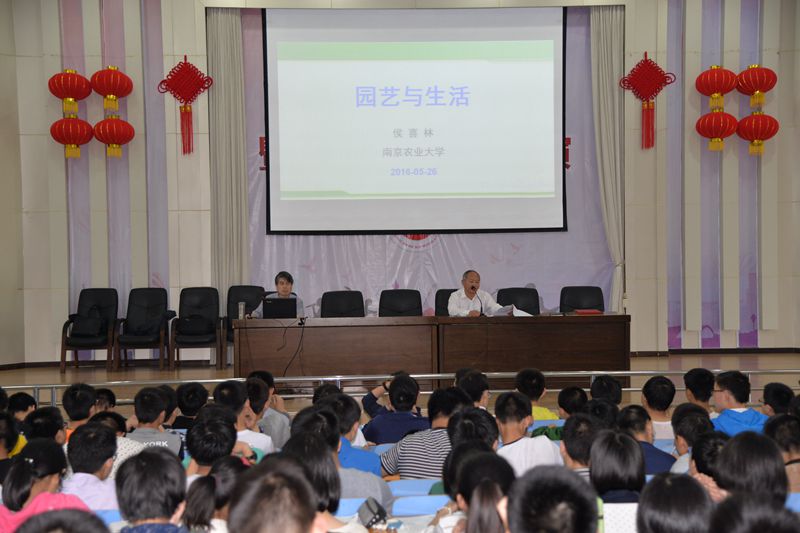 侯喜林教授在《园艺与生活》的科普讲座中,结合自己的研究项目,用扎实的专业知识、信手拈来的生活素材,生动地介绍了园艺的定义、作用、发展,并从园艺食性、饮食搭配等角度讲解各种果蔬花卉的演变及食用方法,形象阐述了园艺与人类生活的密切关系。现场掌声不断,反响热烈,侯教授提出的“让小白菜走进千家万户,用小白菜解决非洲营养问题”,更赢得全场喝彩。讲座结束后,学生纷纷举手提问。