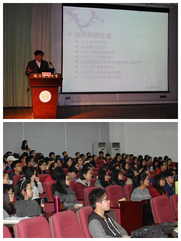 王启松先生首先谈及自己的学生时代,提出促使他从“问题小孩到勤奋学子”的“两高”学习方法——高标准、高效率,指出大学生不应成为书呆子,应有自己的爱好。紧接着,先生谈到所有人都感兴趣的爱情,一句“心怀坦荡,细致入微地爱对方”获得现场一片掌声与喝彩。对于自己的科研生涯,先生谈到那个让中国文明倒退十年的文化大革命,在绝大部分科学家“沉睡”的时候,他努力向前奔跑,马不停蹄,最终以“勤奋”为信仰的他在其他科学家“醒来”的时候已远远超过他们。在从商经历部分,王先生回顾了从一个科研工作者到创业者的勤奋与艰辛。不管是用基因合成技术拯救了全国多所研究所的生命,还是在辞掉印度丰厚待遇工作后去加拿大打下一片天,先生用自己丰富的人生经历诠释了“以勤奋为信仰者,定成大器”。随后,先生对在场大学生提出两个希望,并以自身事例鼓励大家创业,利用天时、地利、人和迎接中国科技创业新时代的来临。随后,王先生与许多同学展开热烈讨论。