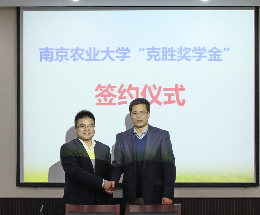 共同设立“克胜奖学金”。植保学院书记吴益东主持签字仪式,江苏克胜集团股份有限公司总经理、中农网购(江苏)电子商务有限公司董事长吴成伟、副校长丁艳锋、产学研合作处处长马海田、91短视频