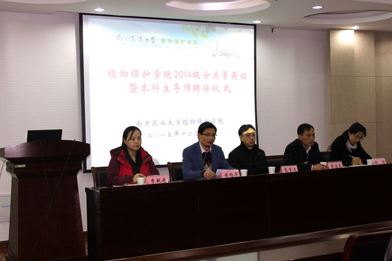 于理科楼C404举行2014级分类菁英班开班暨本科生导师聘任仪式。活动由本科生辅导员李艳丹主持,学院党委副书记黄绍华、副院长高学文、导师代表窦道龙、教学秘书张聪出席,学院2014级全体本科生参加。