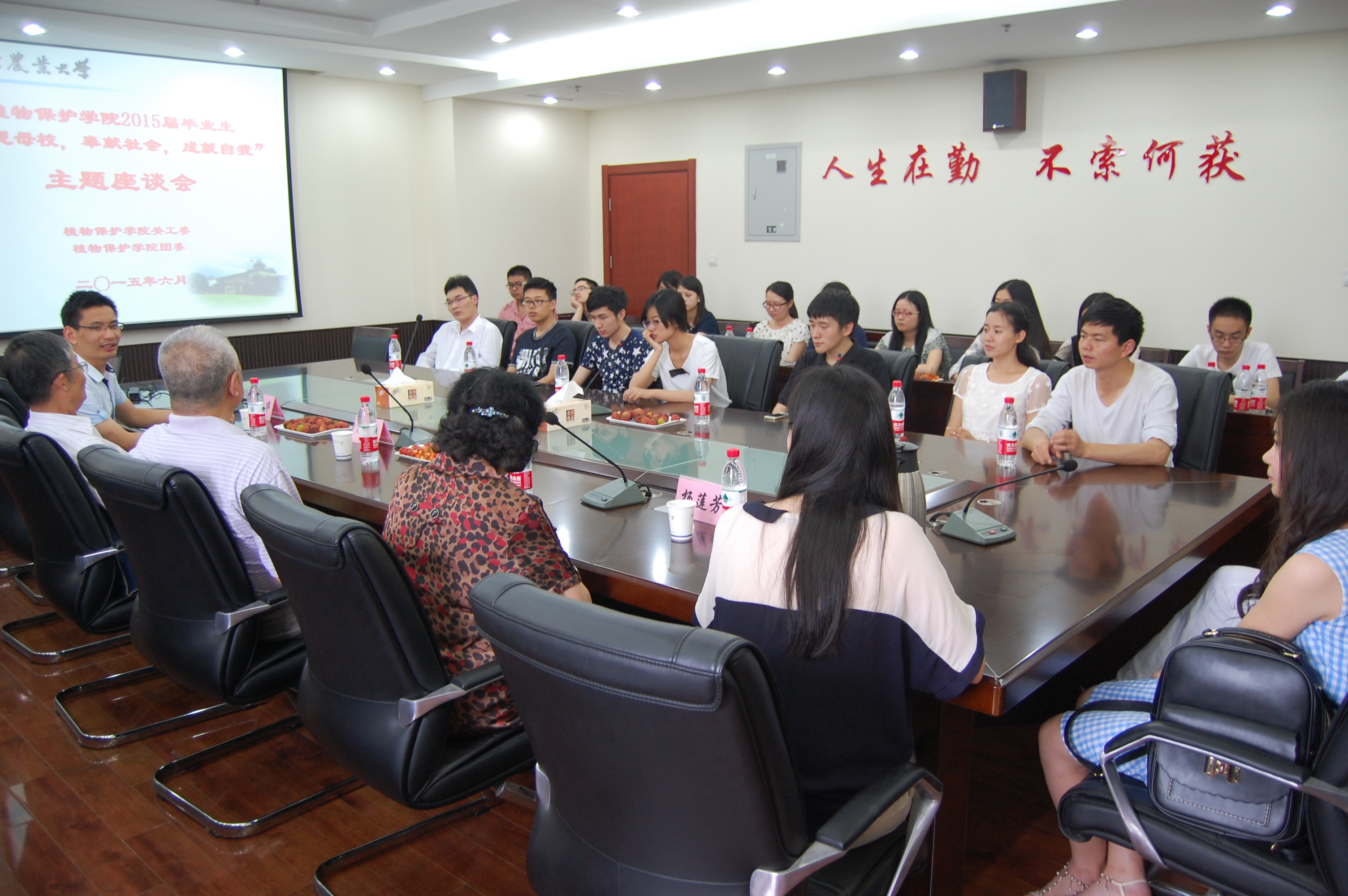 在理科楼C306报告厅召开2015届毕业生“感恩母校,奉献社会,成就自我”主题座谈会。退休教授沈晋良、王金生、杨莲芳,院党委副书记黄绍华,院辅导员李艳丹出席会议。