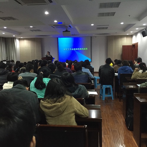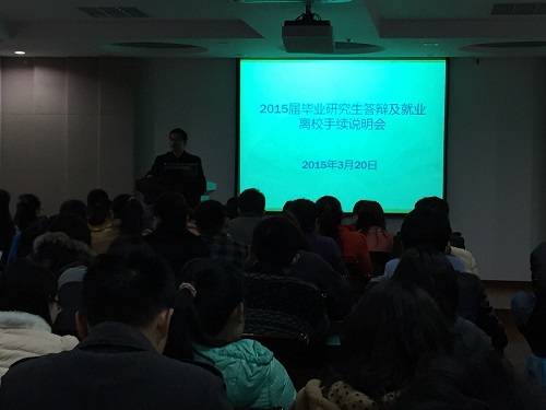 研究生分会主办的2015届毕业研究生答辩及就业离校手续说明会在理科C303举行。院党委副书记黄绍华、研究生辅导员吴智丹、研究生教务秘书岳丽娜为应届毕业生们带来了详尽实用的“毕业攻略”。 黄书记侧重于介绍今年的招聘情况,“求职攻略”告诫大家不要眼高手低,把握好方向,农业起薪虽然较其他行业偏低但努力工作也会有很好的前景。同时,黄书记还鼓励大家自主创业,响应两会号召,表示只要有好的创业或基层项目,学校和学院都会大力扶持的。此外,黄书记还提醒了一下毕业期间的安全问题,要大家注意外出安全和聚会安全。 吴老师就就业协议书、毕业相关表格的获取与提交进行了说明。“档案攻略”包括:报到证、就业协议书、档案和党组织的去向以及挂靠方式、户口等方面。吴老师逐条进行了讲解,力保大家做好走上工作岗位的准备工作。同时,吴老师还指导应届毕业生们如何查询档案动向、如何查询研究生就业相关网站。吴老师给研究生组建了QQ群,方便大家相互交流工作上的心得并联络感情,这也是老师给91短视频