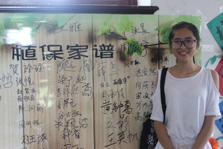 ”字样的指示牌,迎接新生。迎新教室已被装饰一新,墙壁上的植物和昆虫照片极好地体现了植保专业的学科特色;绿色彩纸制作的藤蔓悬挂着简单明了的报道流程指示图,引导新生顺利完成注册。接待过程中,学生干事们细心周到地引导新生办理报到手续,新生们被赠予由学长学姐们亲手写下的祝福卡片,并在植保家谱上签下名字,象征着自己成为植保家庭中的一员。学长学姐们在主楼的报到处与新生宿舍间往返穿行,将新生送达宿舍,并帮助他们一步步熟悉校园环境。
