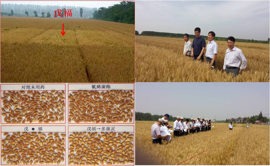 梁帝允高级农艺师还发现,凡是戊福处理的小麦杆青叶秀更加壮实,没有倒伏,而其他药剂处理小区则表现枯黄和有不同程度倒伏。周庆高及考察的植保专家呼吁有关小麦栽培专家和领导,尽快验证和推广戊福在小麦上的应用,为我国小麦大幅度增产做出更大贡献。