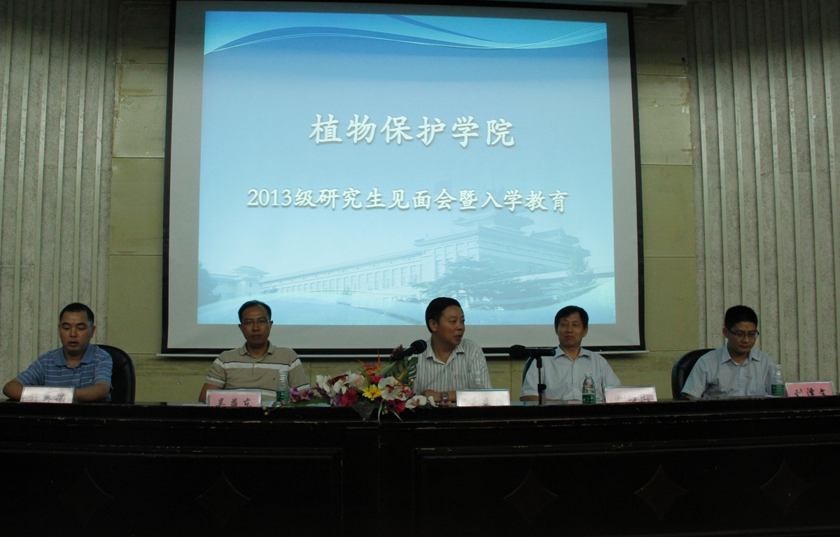 2013级研究生见面会暨入学教育大会在图书馆报告厅成功举行。院党委书记董立尧、院长吴益东、农药系教授周明国及昆虫系教授刘泽文出席会议,会议由副书记许再银主持。