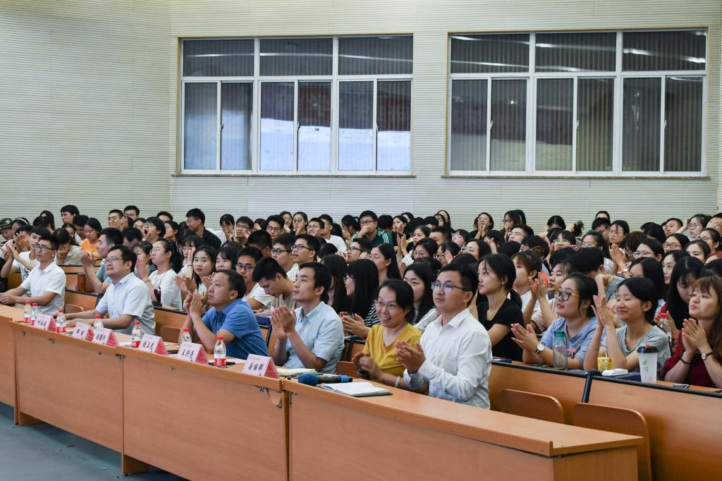 在大学生活动中心隆重举办2019级研究生开学典礼暨入学“安全”教育,出席本次大会的有实验室与设备管理处处长钱德洲,学院副院长张正光、叶永浩、王兴亮,研究生教学秘书岳丽娜以及研究生辅导员李子成和罗舜文。大会由学院党委书记邵刚主持。