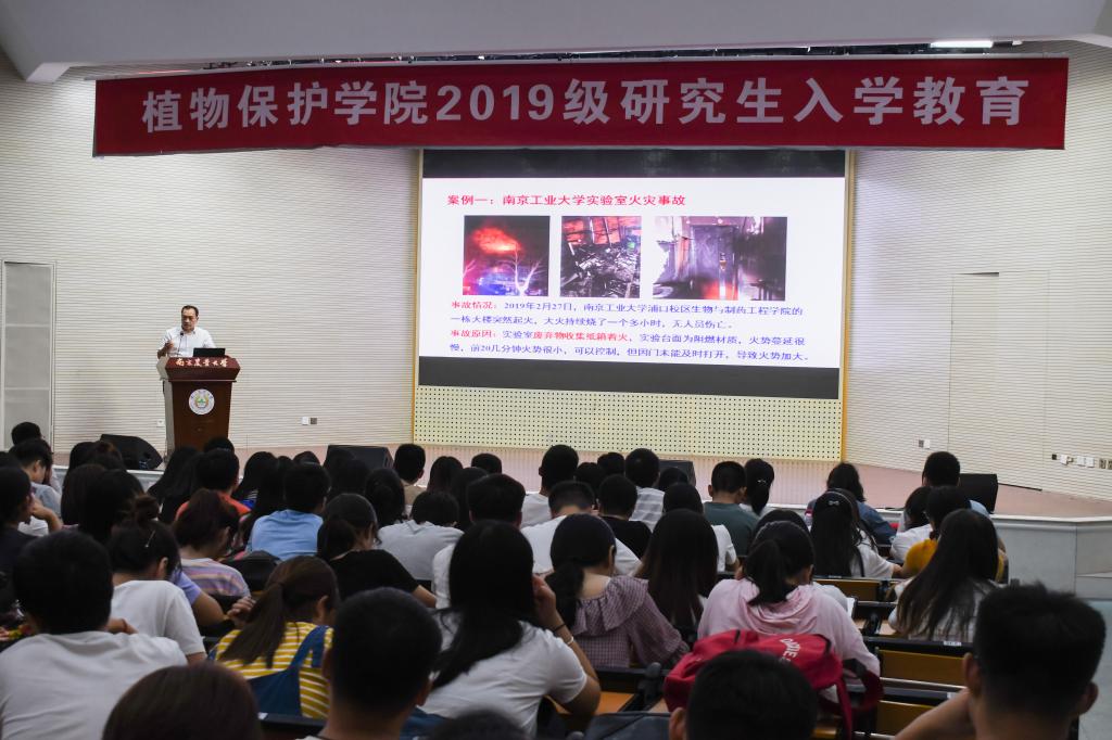 接下来钱处长针对研究生的实验室安全问题展开主题教育报告。道路千万条,安全第一条。他以曾经在高校实验室大学生的不规范操作带来严重后果的安全事故案例做引,指出了现阶段实验室安全管理方面存在的主要问题。然后,他就学校实验室安全管理规范和要求展开了详细地讲解,强调新生在日常实验中要严格遵守学校和实验室的有关要求,严格规范实验操作,正确对待危化品、压力容器和废弃物管理,确保实验室安全。最后,他用海恩法则来共勉:任何不安全事故都是可以预防的!