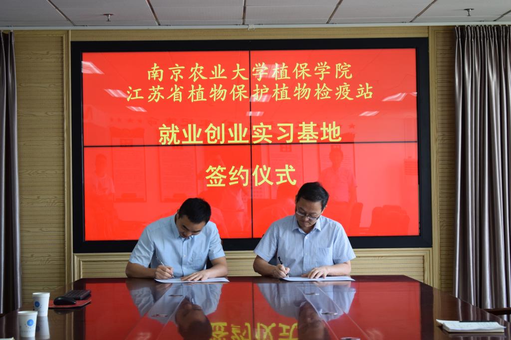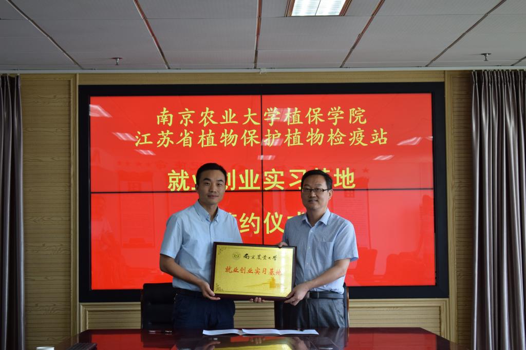 王兴亮副院长,李子成辅导员和4名本科生一行6人赴江苏省植物保护植物检疫站,与植保站主要负责人座谈交流,并举行 “就业创业实习基地”签约授牌仪式。