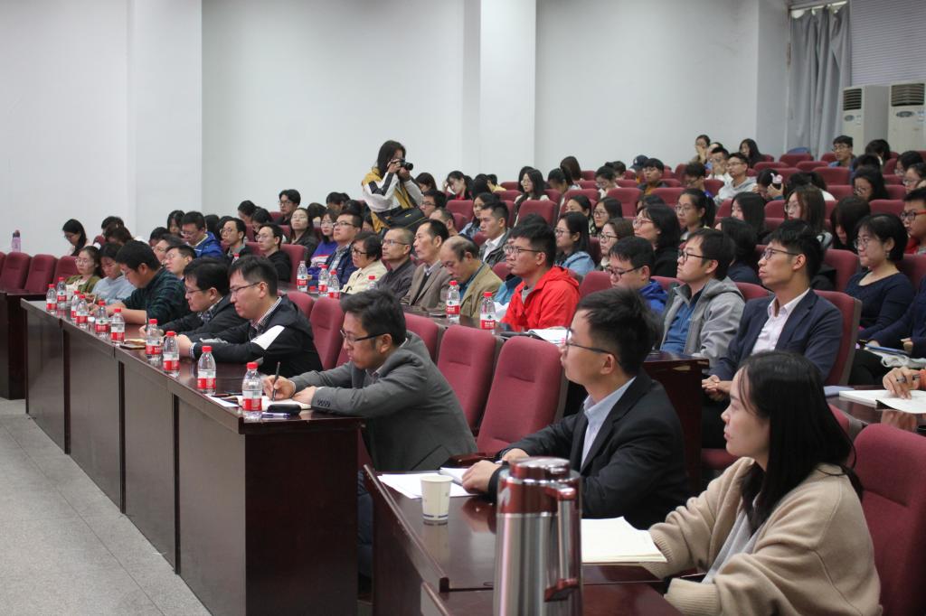 “不忘初心、牢记使命”主题教育理论学习会在教四楼报告厅举行。盛邦跃教授受邀作《“不忘初心、牢记使命”—— 学习习近平新时代中国特色社会主义思想》主题报告。全体在校师生党员和党建班学员参加,学习会由学院党委书记邵刚主持。
