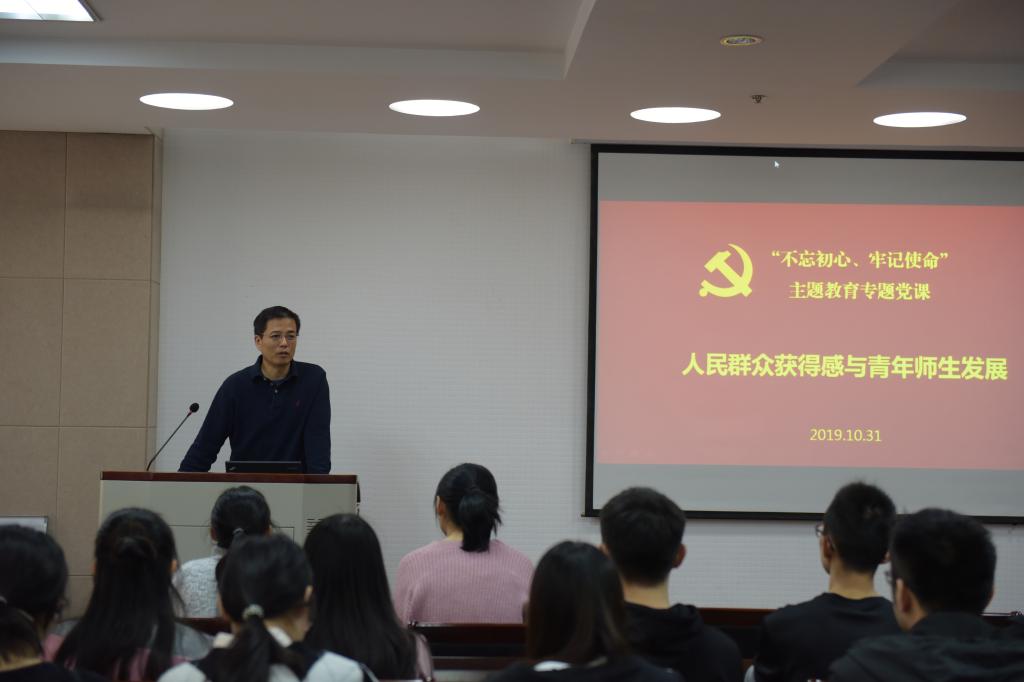 10月23日,学院党委书记邵刚在图书馆报告厅以“习近平新时代中国特色社会主义思想与立德树人”为主题讲授党课。党课围绕新中国成立70年来荒野探索、攻坚克难、深海破冰三个阶段,带领青年学生党员回顾中国共产党带领中国人民在社会主义建设道路上进行的艰苦卓绝、卓有成效的探索。党课分析了新时代党和国家面临的十大挑战,并从“12345”的角度,解读了习近平新时代中国特色社会主义思想的内涵。邵刚希望当代青年学子以“立德树人”为根本,不忘初心、牢记使命;正视差距、实干兴邦;好好学习、天天向上,牢牢结合专业,以自己的专业知识和能力,助力中国乡村振兴、助力实现中华民族复兴的伟大梦想。