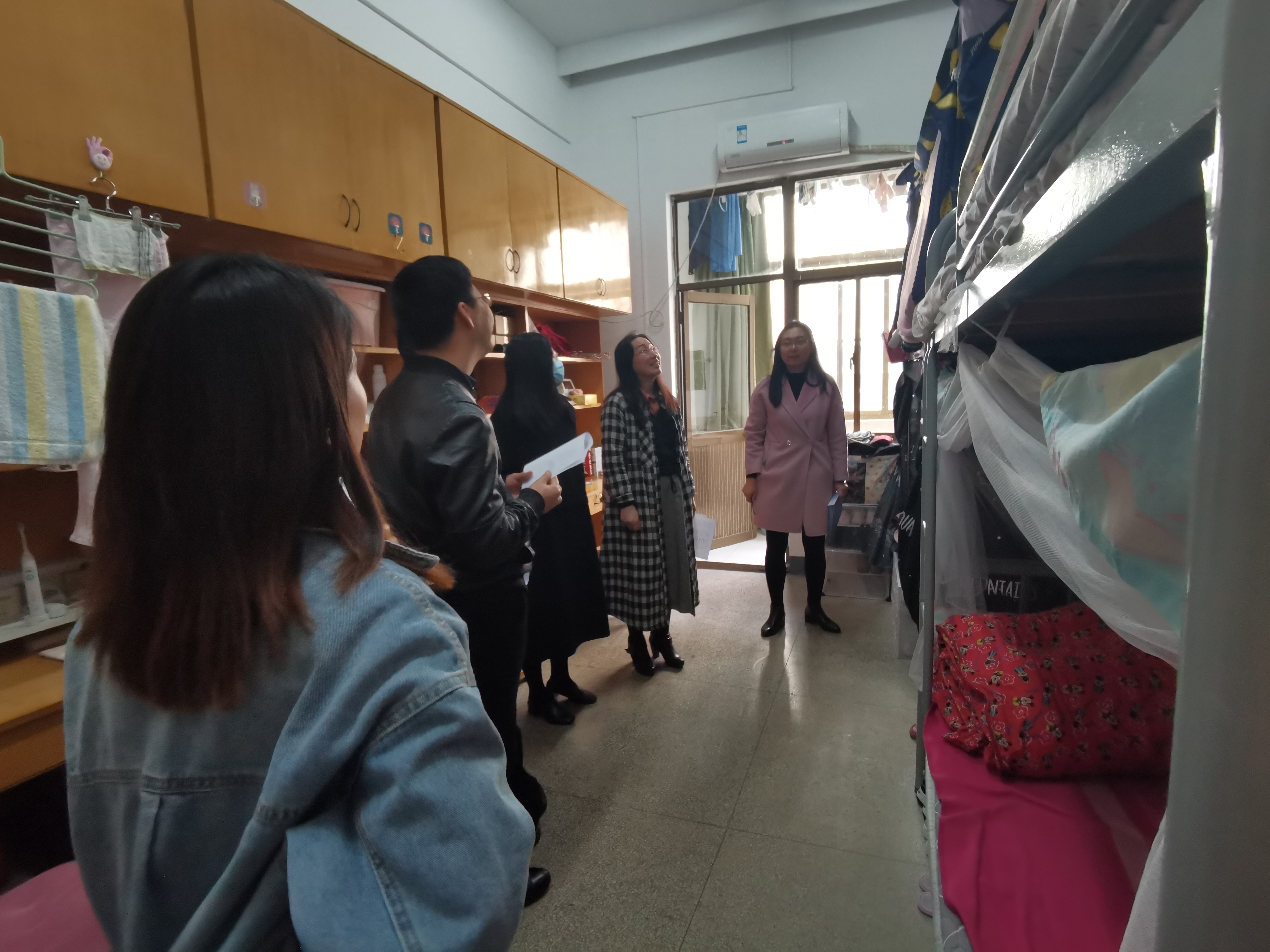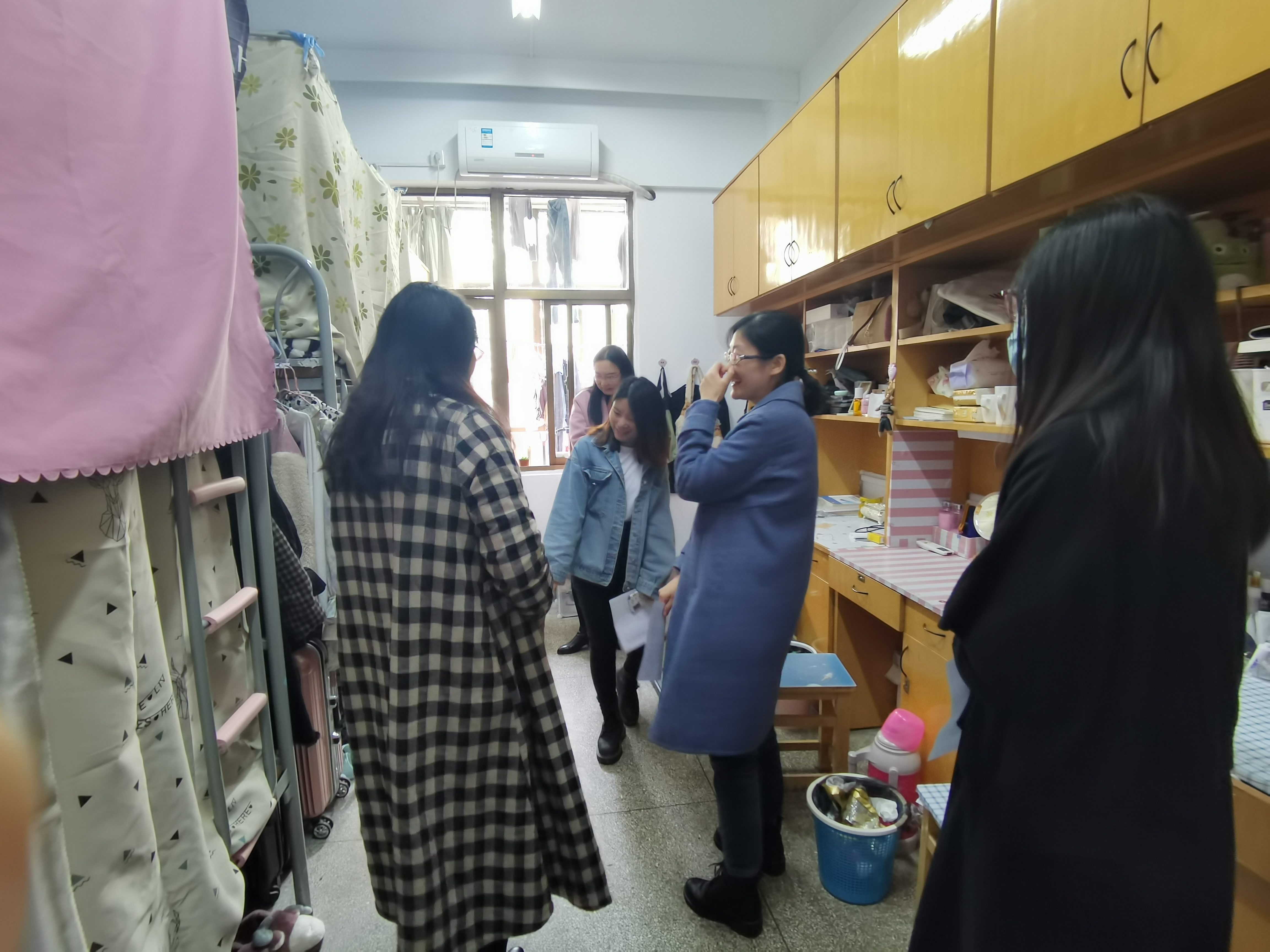 走访过程中,老师与同学们亲切交谈,细心询问大家的生活情况,并对同学们关心的问题进行耐心解答。吴智丹表示,宿舍是一个整体,宿舍安全与卫生要靠全体成员共同维护;宿舍成员来自不同地方、不同课题组,生活作息存在差异性,要相互理解和包容;同时,希望同学们认真做好个人管理,以积极饱满的心态面对学习和生活。高聪芬教授和赵晶副教授细致深入地了解学生的学习与生活情况,了解毕业论文的撰写情况。同时,提醒学生春季天气多变,及时开窗通风,养成良好的生活习惯,形成良好的宿舍文化氛围。