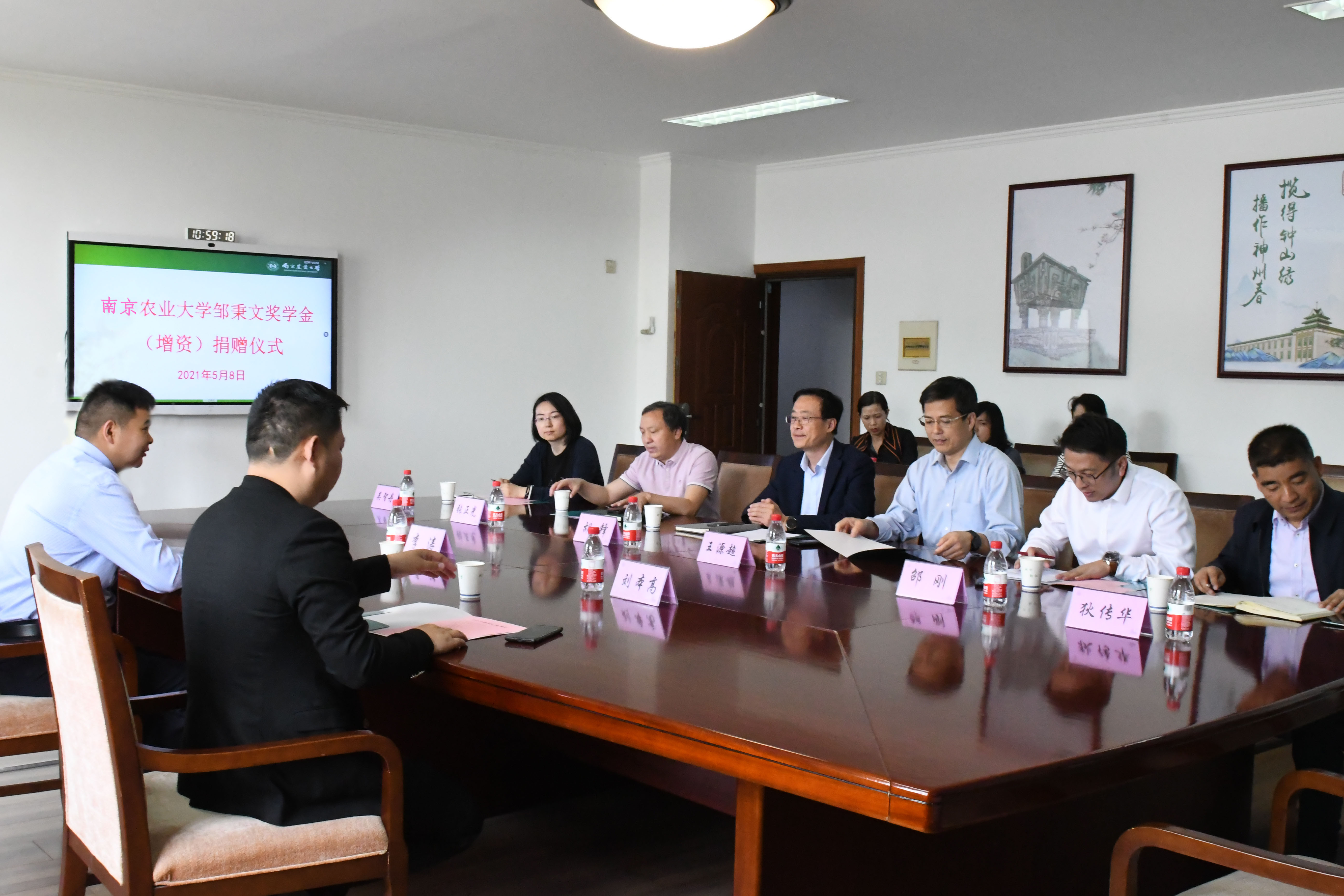2020年5月8日,学校在行政楼A409会议室举行邹秉文奖学金(增资)捐赠仪式。我校2008届植物病理学专业校友、杭州欢田喜地农业科技有限公司总经理李涛,校党委常委、副校长胡锋,校长助理王源超出席会议, 校友总会办公室(教育基金会办公室)、91短视频
