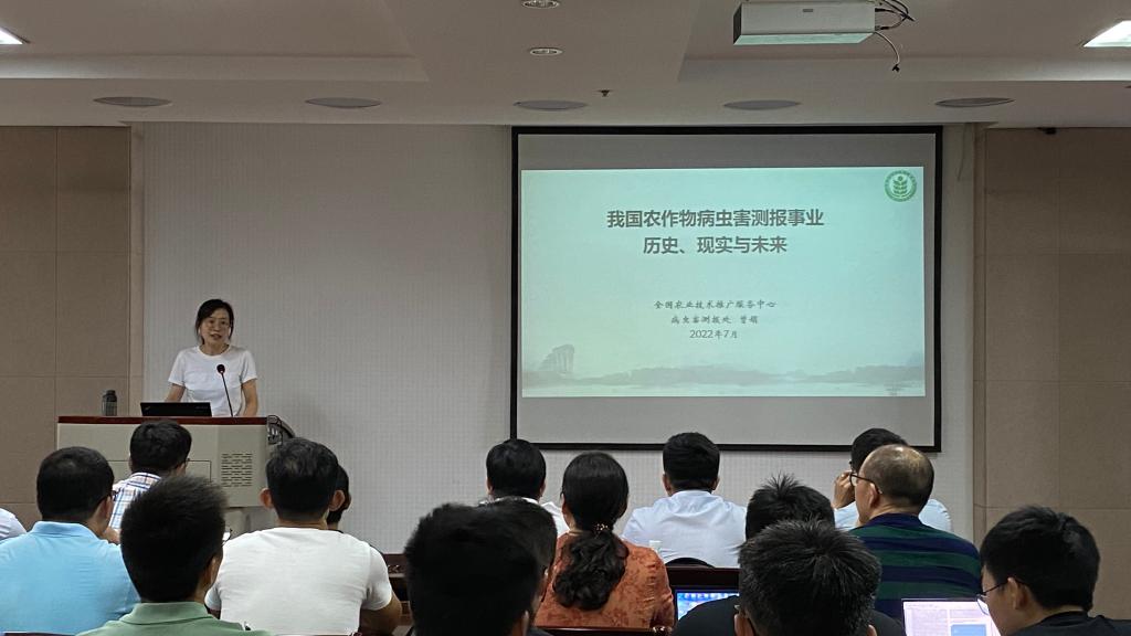2022年7月12日曾娟以“我国农作物病虫害测报事业的历史、现实与未来”为主题,从历史发展、技术发展和事业发展三方面全面介绍全国农技推广服务的发展历程,并介绍了以数字化精准监测预警技术体系为核心的现代化病虫害监测预报系统。