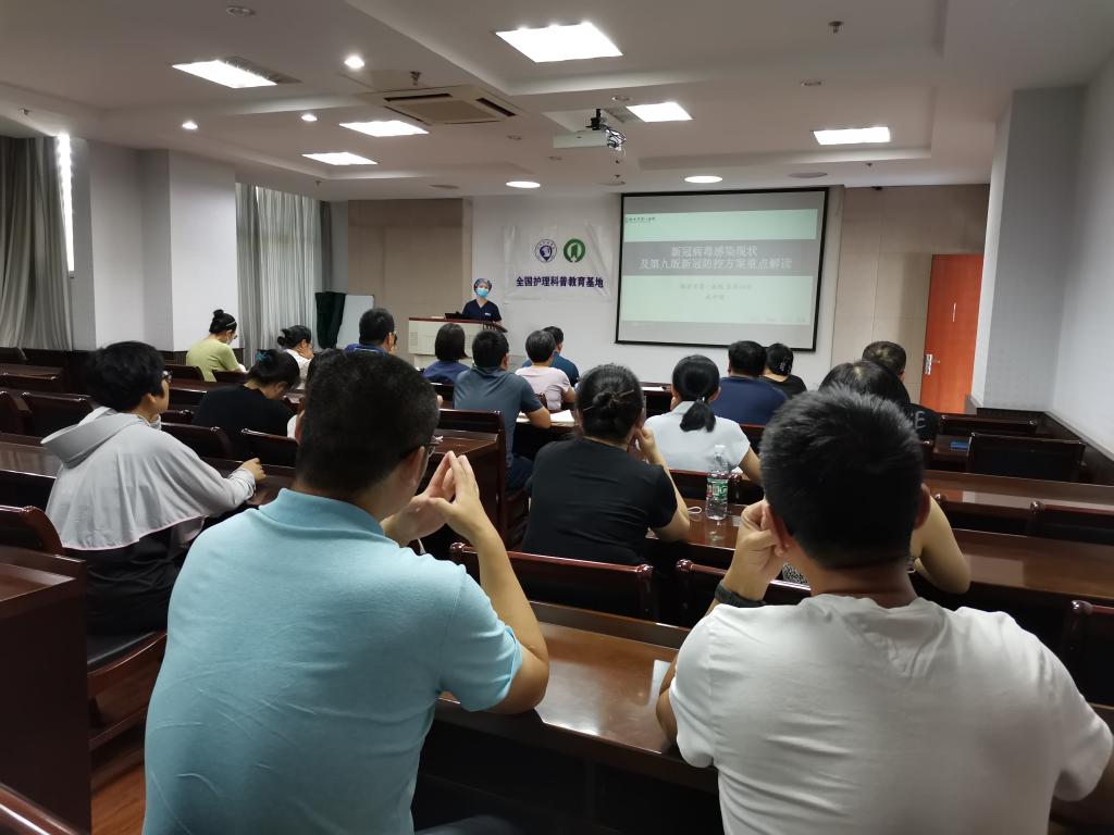 学院特邀了南京市第一医院发热门诊成中娟护士长进行授课讲解。她从新型冠状病毒的流行病特点、传染源控制等七方面对第九版新型冠状病毒肺炎防控方案进行了重点解读,对学院在疫情突发过程中如何有效落实防控措施等工作同大家作了细致交流。随后,急诊护士长王娟解读了2020AHACPR和ECC指南更新,并进行医学知识方面实操救人演练。