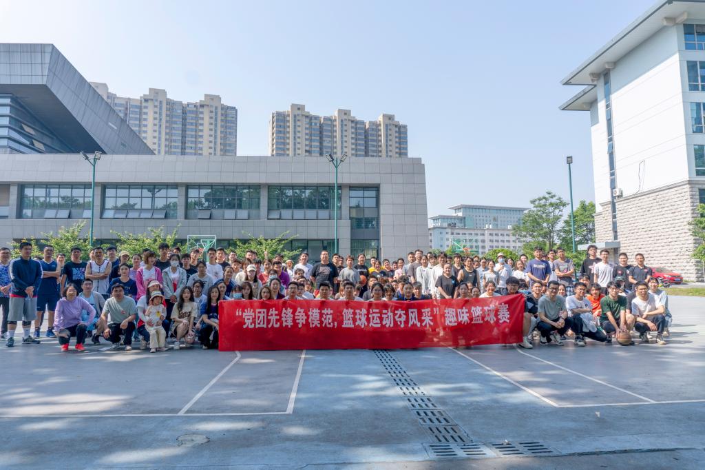在篮球场举办“党团先锋争模范,篮球运动夺风采”党团支部趣味篮球赛。学院教师党支部、研究生党支部和本科生团支部共计17支队伍170余名师生参加本次活动,比赛现场热闹非凡。