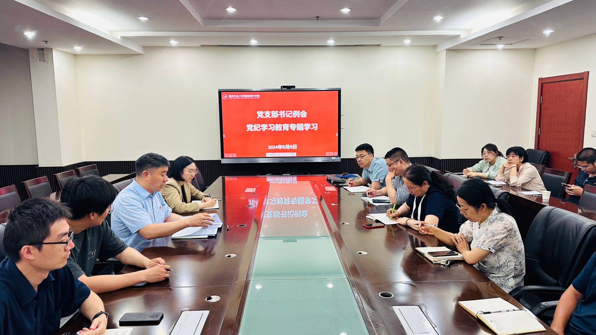 党纪学习教育专题学习会在理科楼C306召开,会议由学院党委副书记(主持工作)许承保主持,全体党支部书记参加本次学习。