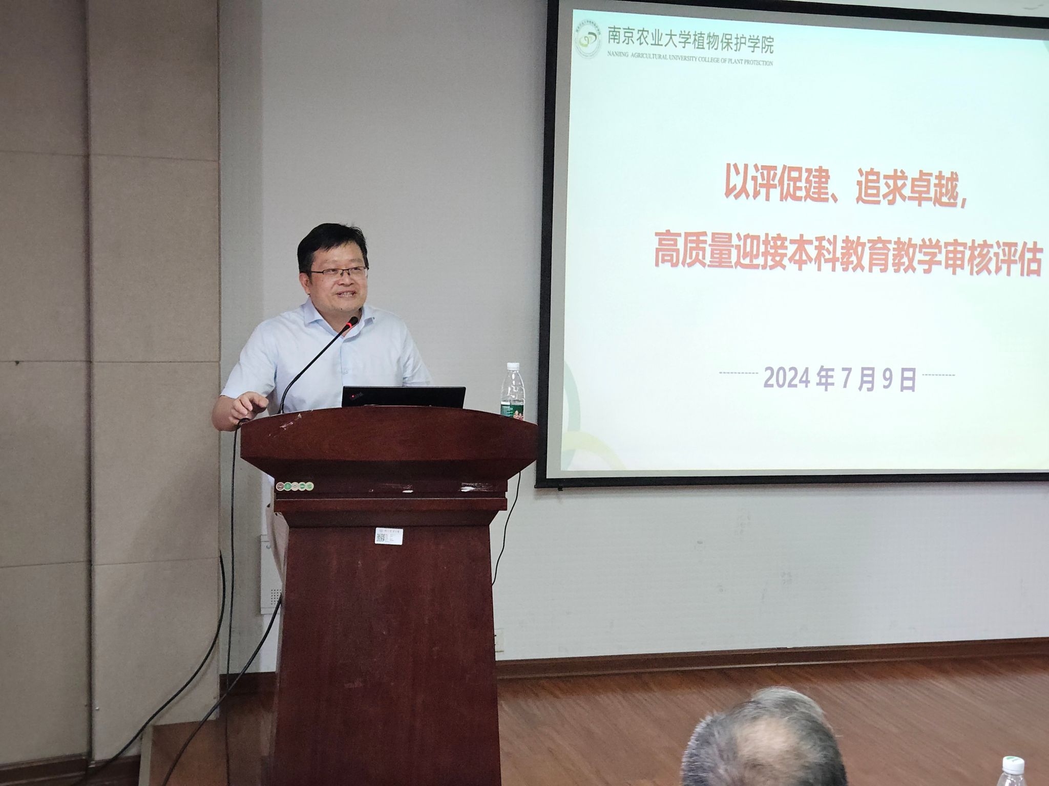 校人力资源处副处长、人才办副主任叶永浩受邀作《以评促建 追求卓越:高质量迎接本科教育教学审核评估》专题报告。他围绕教育部本科教育教学评估工作,从新一轮本科教育教学审核评估、本科教育教学审核评估专项评估、植物保护专业概括、植保专业教育教学质量保障体系建设等四方面进行介绍,梳理了高等教育评估40年发展历程,就教育教学评估流程、体系、新格局等方面做出深入解读,呼吁全院师生以此为契机,全面梳理教育教学工作,持续提升教学质量,推动学院教育教学事业再上新台阶。