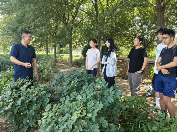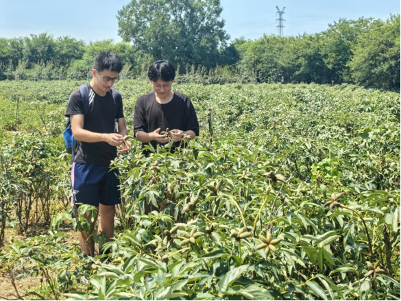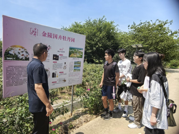金陵国卉牡丹园作为华东区最大的药用牡丹种植基地,是一个以牡丹为核心,集种植、加工、文旅于一体的全产业链园区,汇集九大色系、六百余个牡丹品种。见习期间,团队成员在张文献先生的带领下,考察牡丹林下种植模式,观察牡丹果荚形态特征,了解牡丹全产业链开发情况。通过实地学习与互动交流,团队直观掌握了牡丹种植的创新技术,明晰理论知识在实践中的更新与应用,还对牡丹产业的多元增值路径有了深入认识。