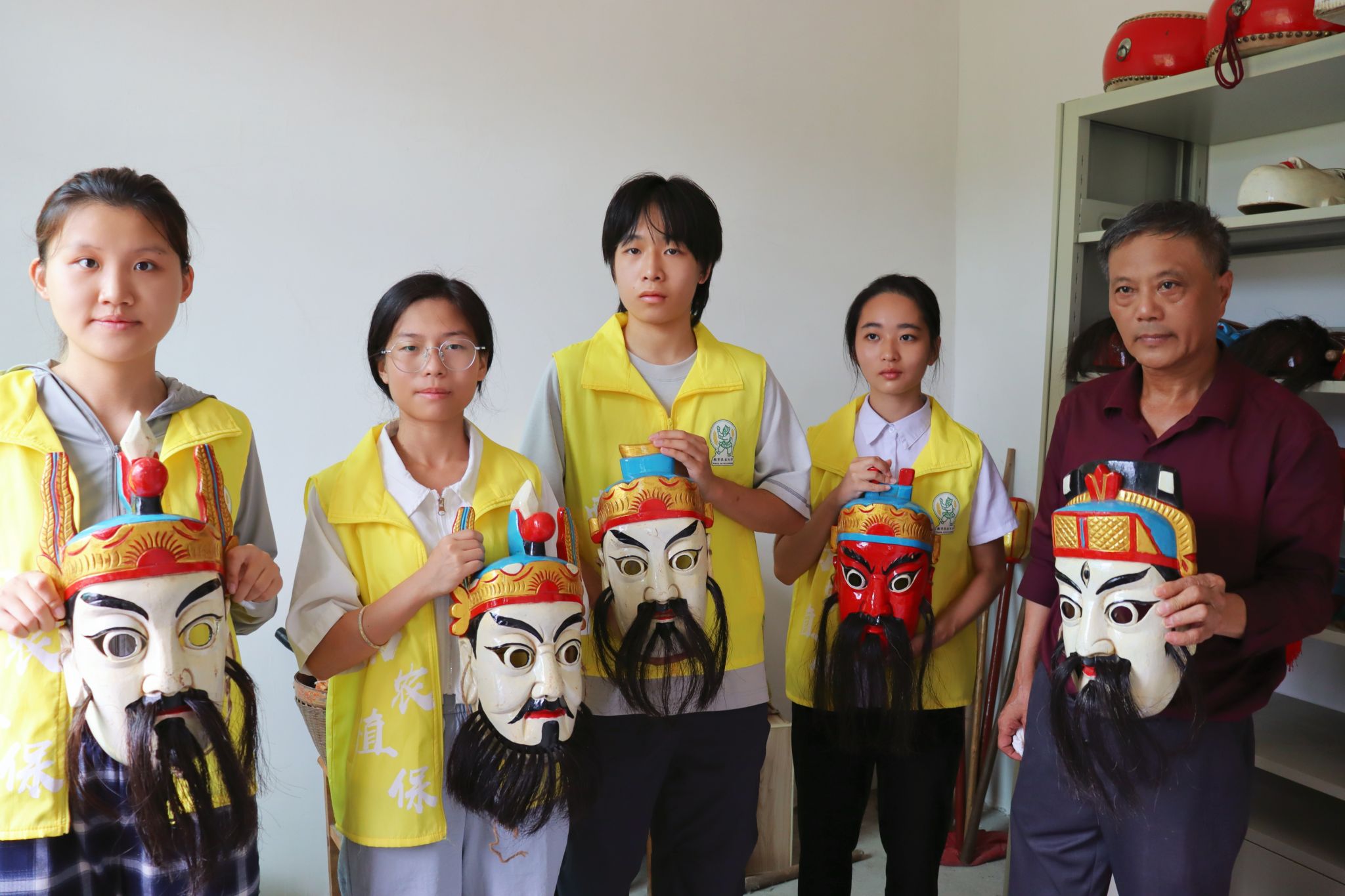 乐安县鳌溪镇罗山村“打戏头古”源于英雄杀敌的传说,融合当地习武风俗,寓意祈求傩神保佑全村平安,风调雨顺,五谷丰登。在江西省首个村级傩文化展示馆内,实践团成员认真倾听驻村第一书记王国庆细致讲解罗山傩舞文化内涵,感受国家级非遗的千年独特魅力。据了解,王国庆扎根基层,把非遗傩文化传承与推进乡村振兴有机结合,将罗山傩舞从华丽舞台搬到田间地头,并创新性开展傩舞进校园活动,为罗山村注入持久的文化活力。在傩面具展示馆内,罗山傩舞第37代传承人曾明亮向实践团成员热情介绍道:“罗山‘打戏头古’有8对傩神面具及17个傩神角色,分别对阵表演,呈现古代朴实神秘、极具神韵的故事情节。”实践团成员通过亲手触摸傩面具,了解傩面制作原料及方法,探究傩面具的艺术风格,深刻感受到“摘下面具是人,戴上面具是神”的神秘傩面文化色彩。