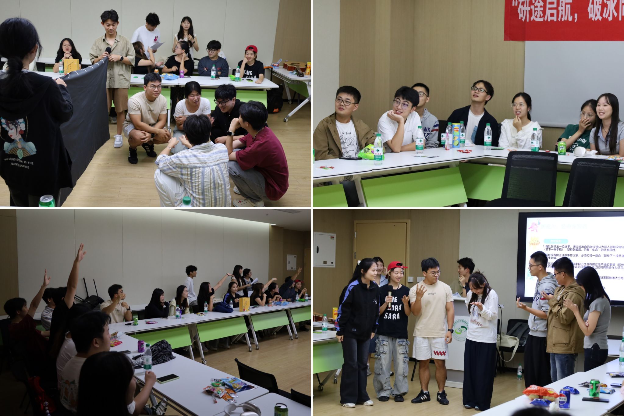 研分会在滨江校区21号楼206会议室举办了新生见面会暨破冰团建活动,学院研究生辅导员鞠然然出席,研会全体成员参加,活动由文艺部吕文睿和孙菁泽主持。