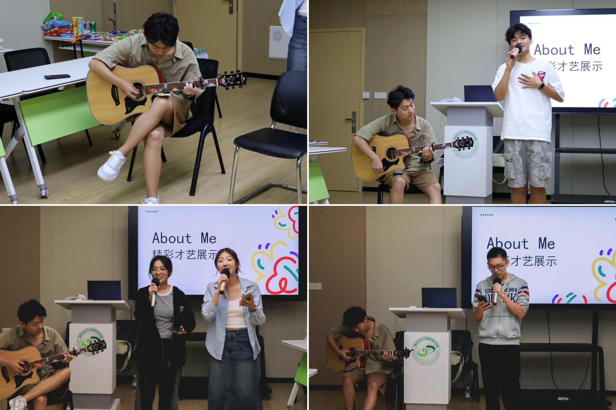 接着是才艺展示,孙菁泽同学用温暖的吉他琴声为才艺展示环节全程伴奏;王玉杰同学以一曲《天后》惊艳开嗓,深情的演唱搭配吉他的悠扬旋律,瞬间吸引了全场注目;吕文睿与易琦玮合唱的《小情歌》以熟悉的歌词引发全场共鸣;张恩培同学的一首《晴天》为才艺展示环节画上圆满句号,经典旋律拉近了彼此距离,现场充满欢声笑语。