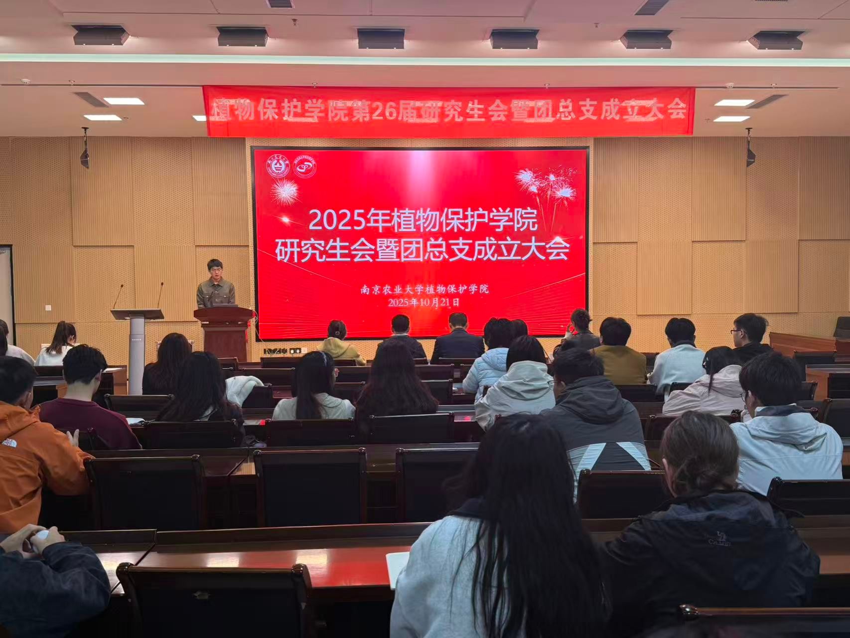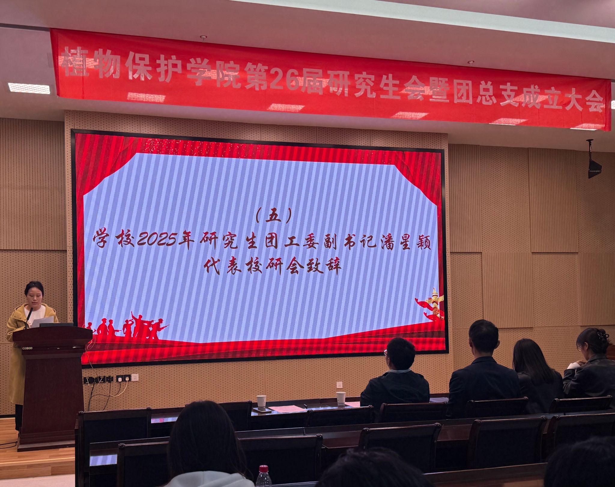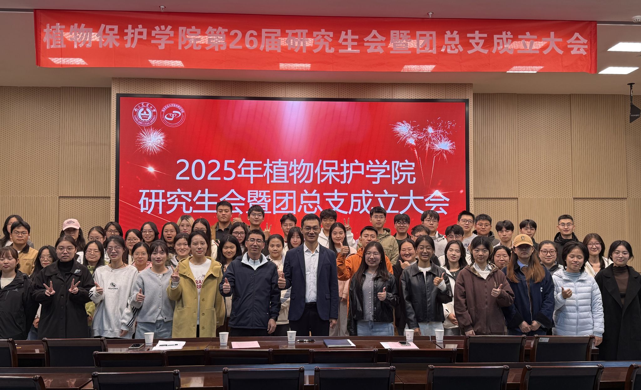 在21号楼114会议室召开第26届研究生会暨团总支成立大会。学院党委副书记陈志亮,研究生辅导员罗舜文、鞠然然,校研究生团工委副书记潘星颖,学院第25届研分会执行主席卢亚欣出席会议,学院第26届研分会全体成员、2025级研究生新生班长和团支书参加了会议,会议由学院第26届研分会办公室干事周锦鸿主持。