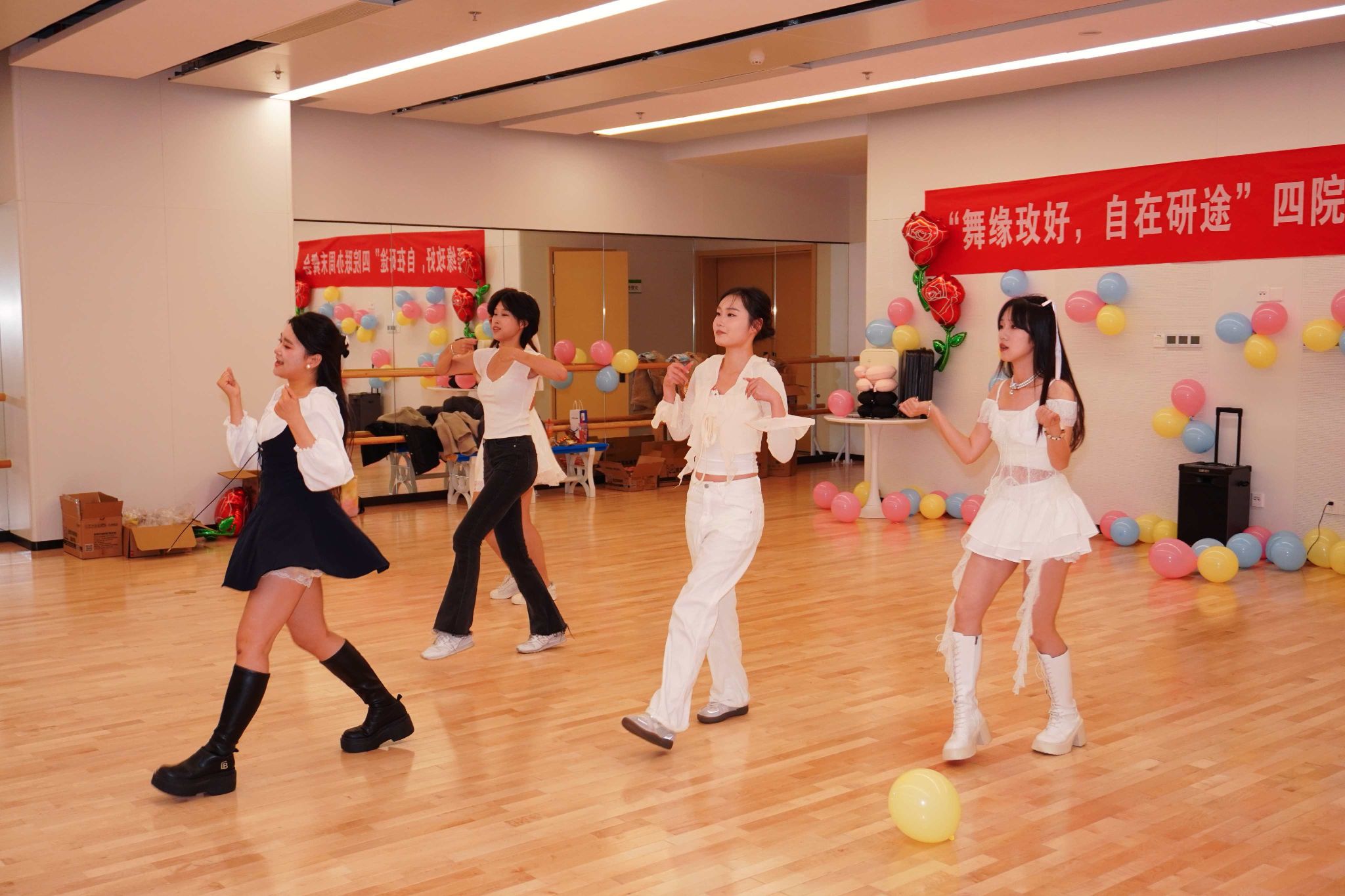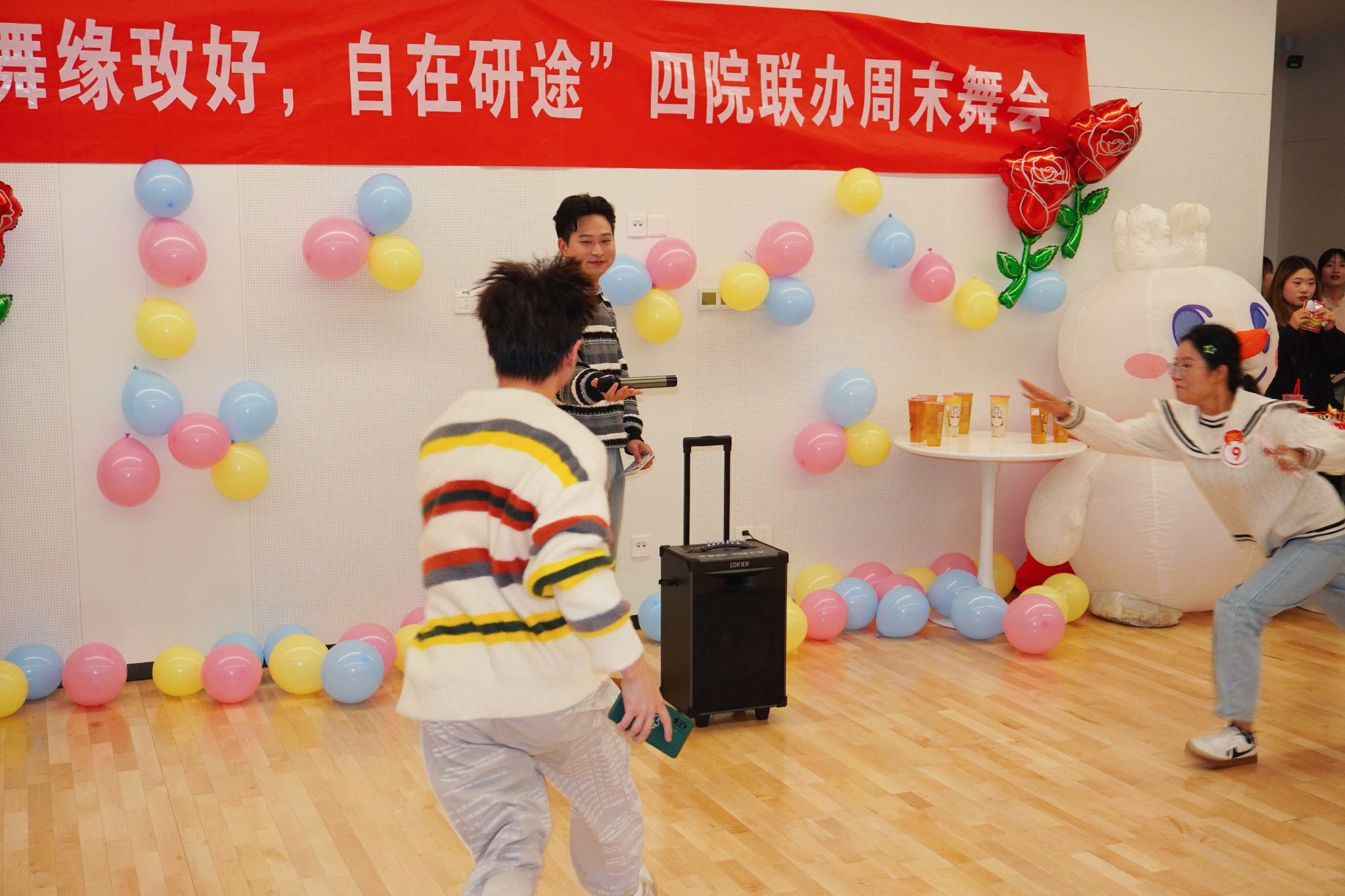 至此,“舞缘玫好,自在研途”四院周末舞会圆满落幕。这个夜晚,同学们不仅收获了欢乐与礼品,更很好地诠释了“无需等待谁的许可,不必迎合任何眼光”,勇敢地展示自我,结识挚友。愿这支秋夜的玫瑰,永远绽放在每位参与者的“研途”记忆之中,芬芳而耀眼。