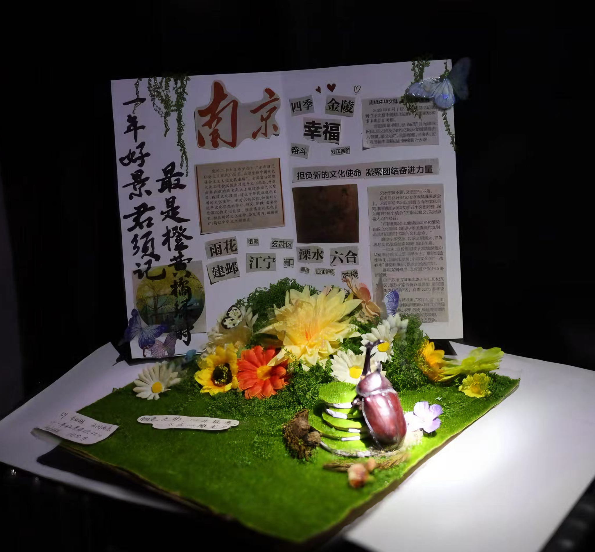 昆虫标本大赛搭建了多元展示的广阔舞台,以金陵文化为脉络,以昆虫观察为纽带,让我们得以深刻洞察自然、生态与文化相互交织的深层联系。金陵文化作为珍贵的文化瑰宝,与昆虫世界相映成趣、相得益彰,构建起独特的认知视角。