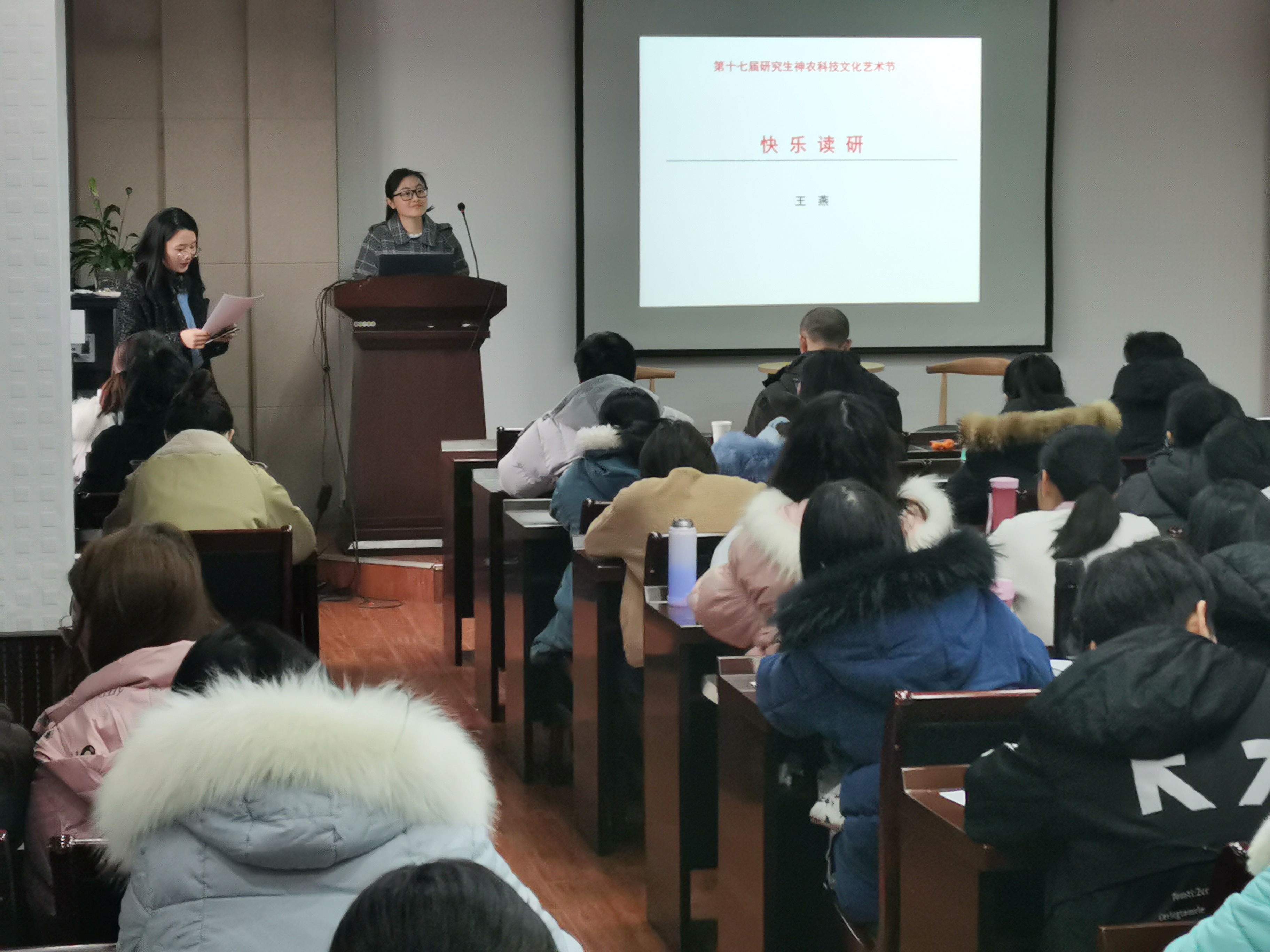 王燕老师以个人经历和体会与同学们分享了快乐读研的良方。首先要明确“为什么要读研”,并就个人目标有针对性地做好相关规划,在此基础上,读研期间要努力完善自我,培养自己的核心竞争力。其次在开展课题研究时,要认真对待导师分配的课题,同时积极发挥主观能动性,主动思考,也要虚心求教。再者在处理与导师、师兄师姐以及同学的关系时,要做到换位思考,求同存异。最后,王老师更是以身边的真实例子诠释:研究生需要有一颗博大的心,生命不息,学习不止,永远都要有一刻积极上进的心,机会往往都是给有准备的人。