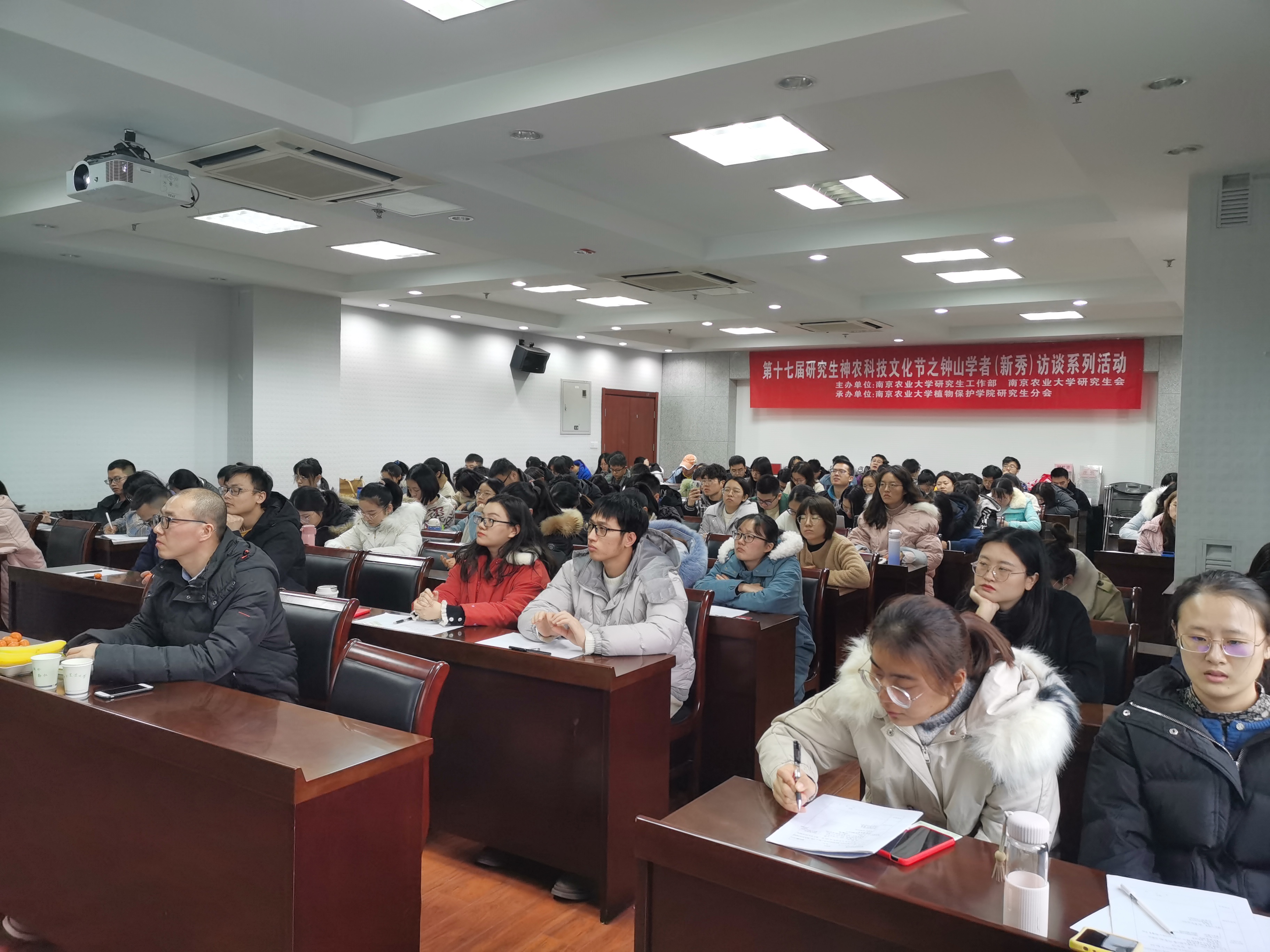 专场)在理科楼C303成功举办,钟山学术骨干、农药系侯毅平教授和钟山学术新秀、植物病理系王燕副教授做客钟山学者(新秀)访谈现场,120余名研究生参加了本次访谈活活动,活动由吴双同学主持。