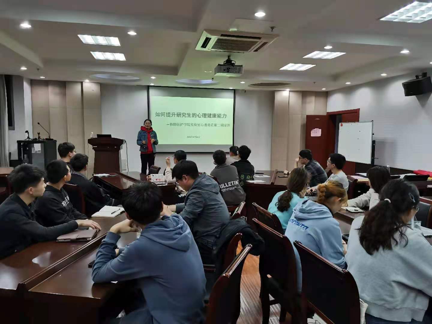 培训前,武昕宇从心理健康的基本概念介绍了研究生的心理健康标准,讲授了辨别心理障碍的标准以及怎样应对的措施。