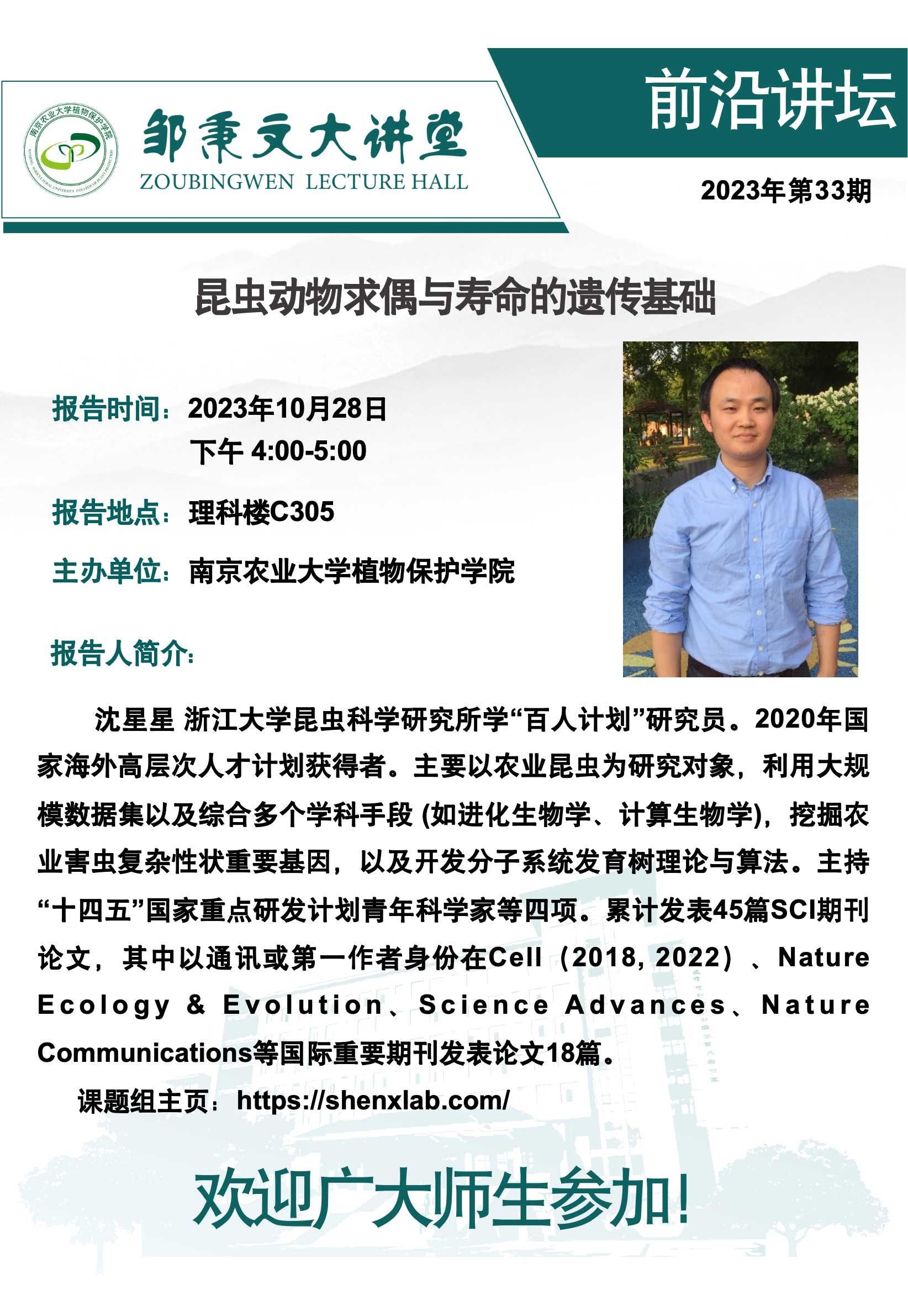 邹秉文大讲堂之前沿讲堂-昆虫动物求偶与寿命的遗传基础