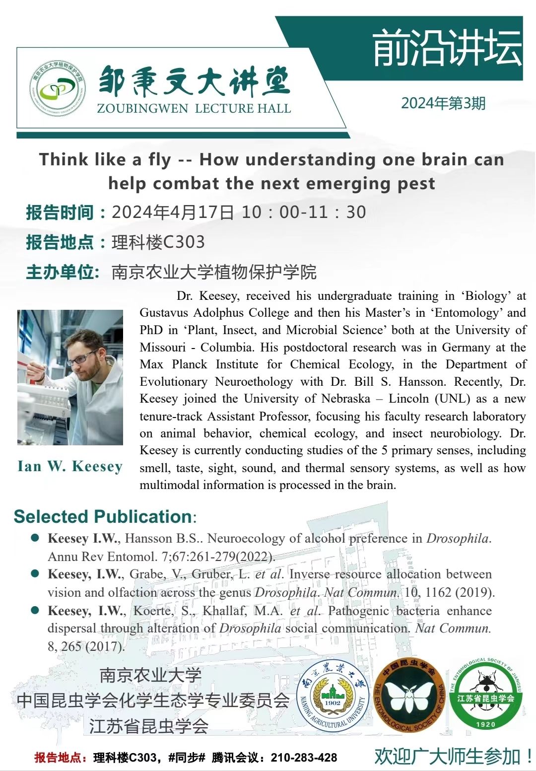 邹秉文大讲堂之前沿讲堂—Think like a fly -- How understanding one brain can help combat the next emerging pest
