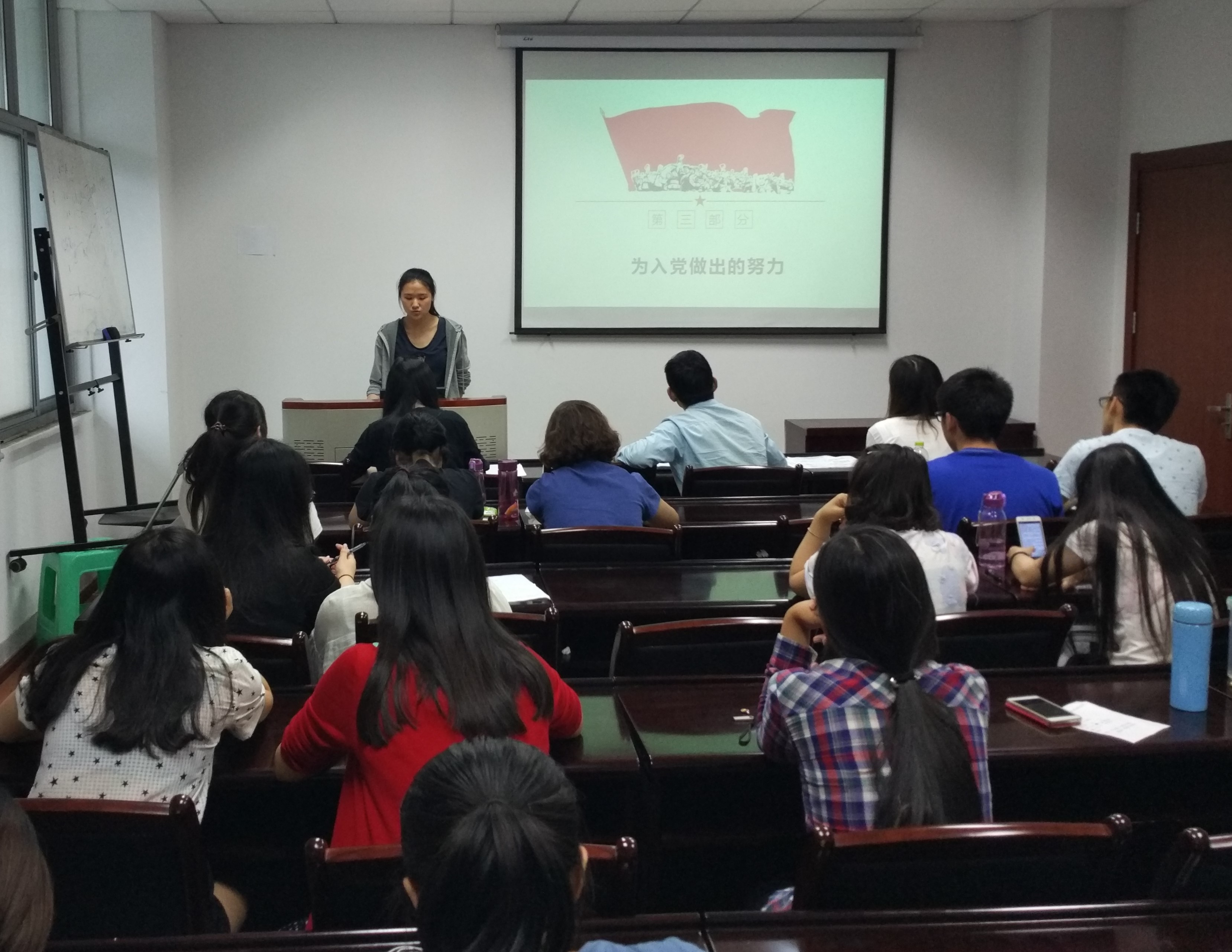 会议开始后,各候选人按照从大三到大二的顺序依次进行答辩。答辩分两个环节,第一个环节由各候选人通过ppt展示自身情况,包括入党动机,为入党所做的努力,自身的优势和不足等方面,第二个环节是现场问答,由老师对答辩对象进行提问,以更加全面深入地了解候选人在大学期间的表现。