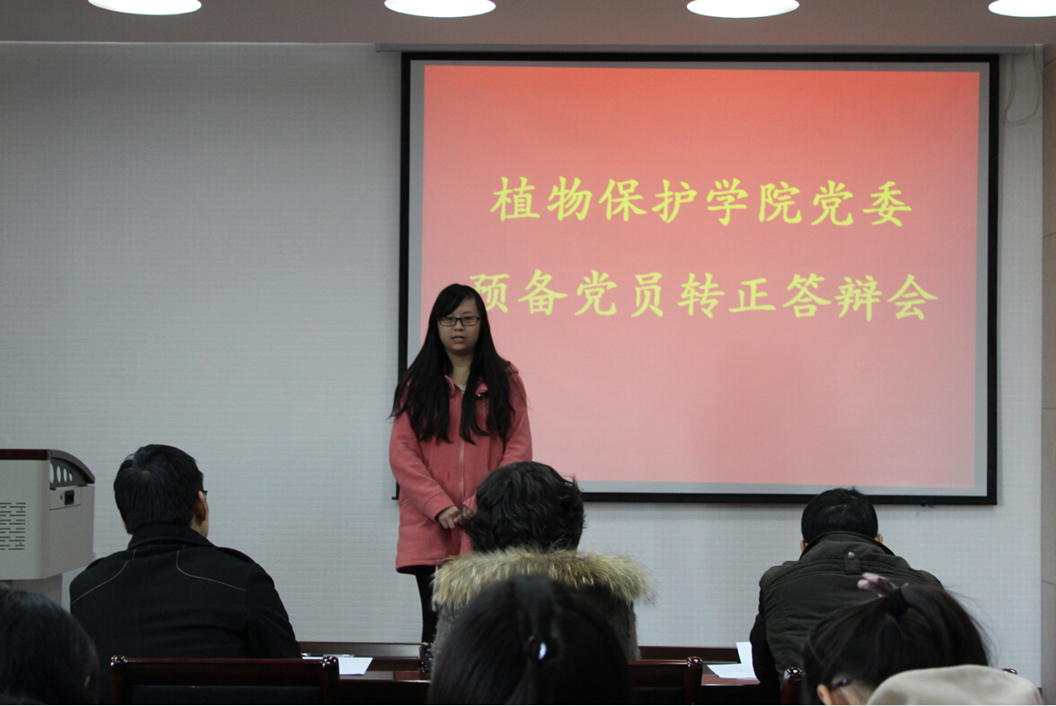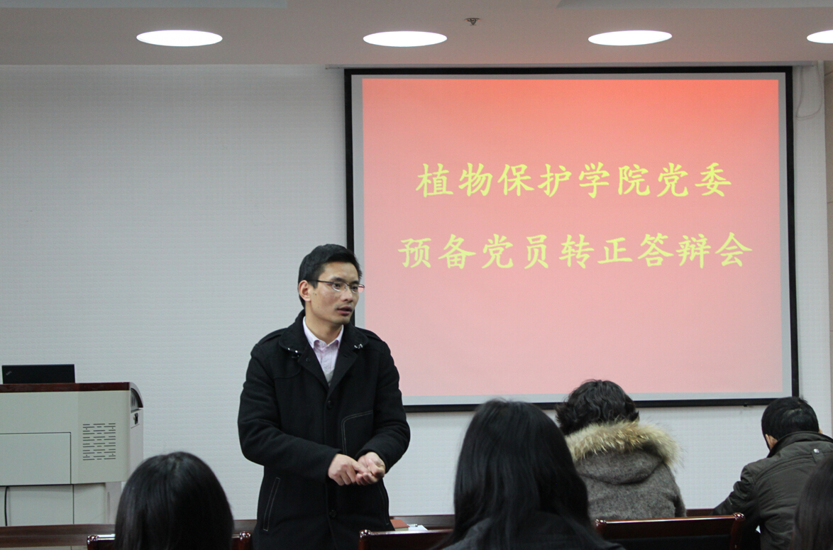 12月2日下午2:30,植保学院于理科楼C305举行预备党员转正答辩会,出席会议的评委为院党委副书记黄绍华、农药系教工支部书记高聪芬、昆虫系教工支部书记李元喜、研究生辅导员吴智丹、本科生辅导员李艳丹,张昊、何凡、秦晓宇等十名预备党员参加答辩,会议由吴智丹主持。